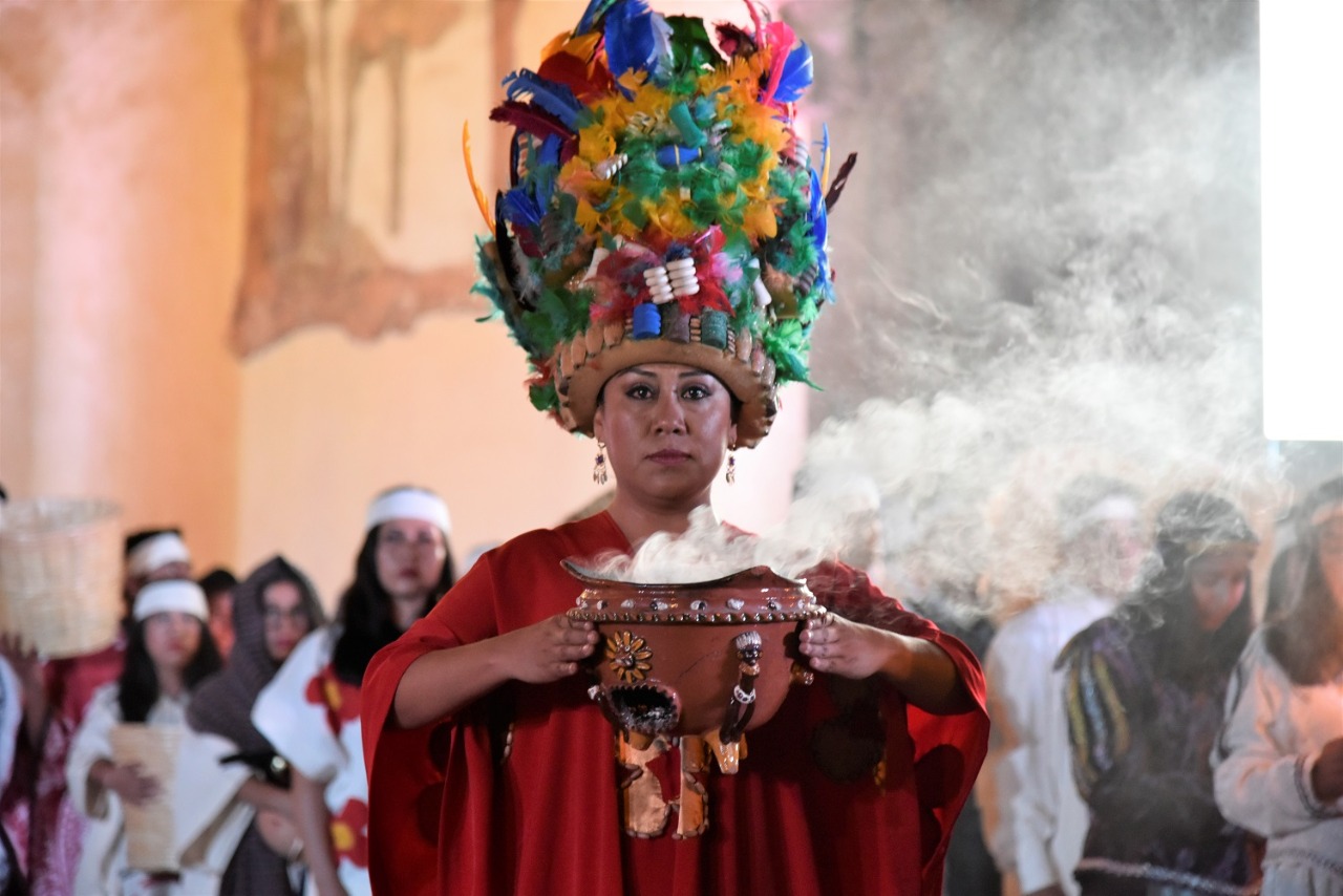 Tlaxcala, Tlax; 5 de octubre de 2019 (Pulso) Cientos de familias presenciaron la noche de este viernes, la representación de la diáspora tlaxcalteca en el Atrio del Conjunto Franciscano de Nuestra Señora de la Asunción, como parte de los festejos por el 494 Aniversario de la Fundación de la Ciudad.