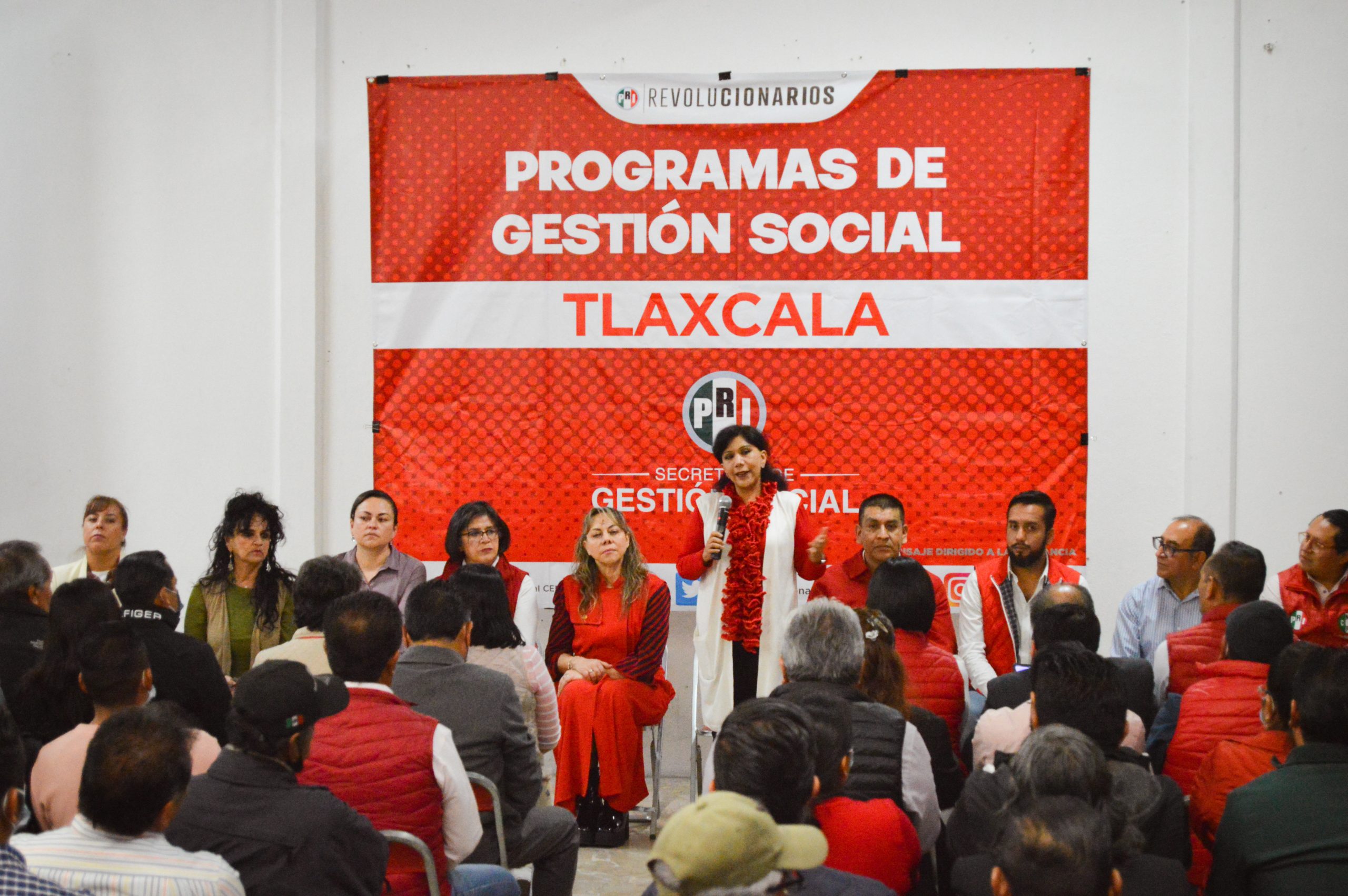 Tlaxcala, Tlax; 23 de febrero de 2023 (PulsoRed) Durante la toma de protesta de la Secretaria y Subsecretaria Estatal de Gestión Social del PRI Tlaxcala, Rosa Emma Castañón Nava y Carolina Carrasco Bustillos, de la mano de la Secretaria de Gestión Social del CEN del PRI, Ma. Sara Rocha Medina; la Presidenta del Comité Directivo Estatal del PRI, Anabell Ávalos Zempoalteca presentó este día el Programa de Gestión Social “PRImero Tlaxcala”; el cuál tiene como objetivo ayudar a mejorar la calidad de vida de las y los tlaxcaltecas a través de los componentes de alimentación, educación, salud y seguridad humana, agua, vivienda, inclusión productiva y financiera; en donde la ciudadanía podrá acceder a los diferentes tipos de apoyos subsidiados a través de los programas que ofrece el partido.