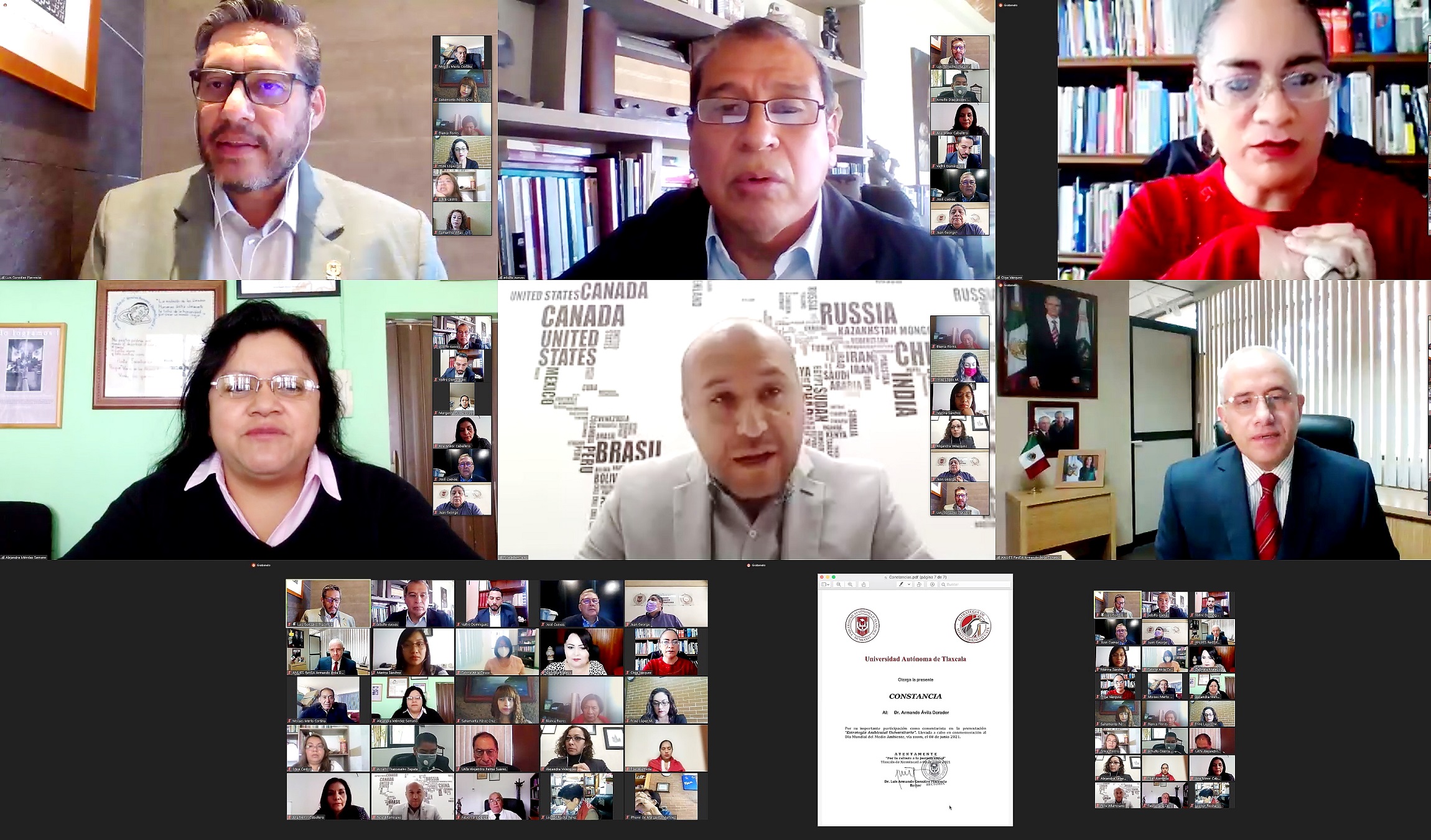 En este evento, intervinieron como comentaristas, la Lic. Alejandra Méndez Serrano, Directora del Centro “Fray Julián Garcés”, Desarrollo Local y Derechos Humanos A.C.; el C.P. Noé Altamirano Islas, Presidente de COPARMEX Tlaxcala y miembro del Consejo Consultivo Empresarial de la UATx; la Dra. Olga Vázquez Guzmán, académica SNI especialista en sustentabilidad; y el Dr. Armando Ávila Dorador, Coordinador de la Red de Sustentabilidad Ambiental de la ANUIES.