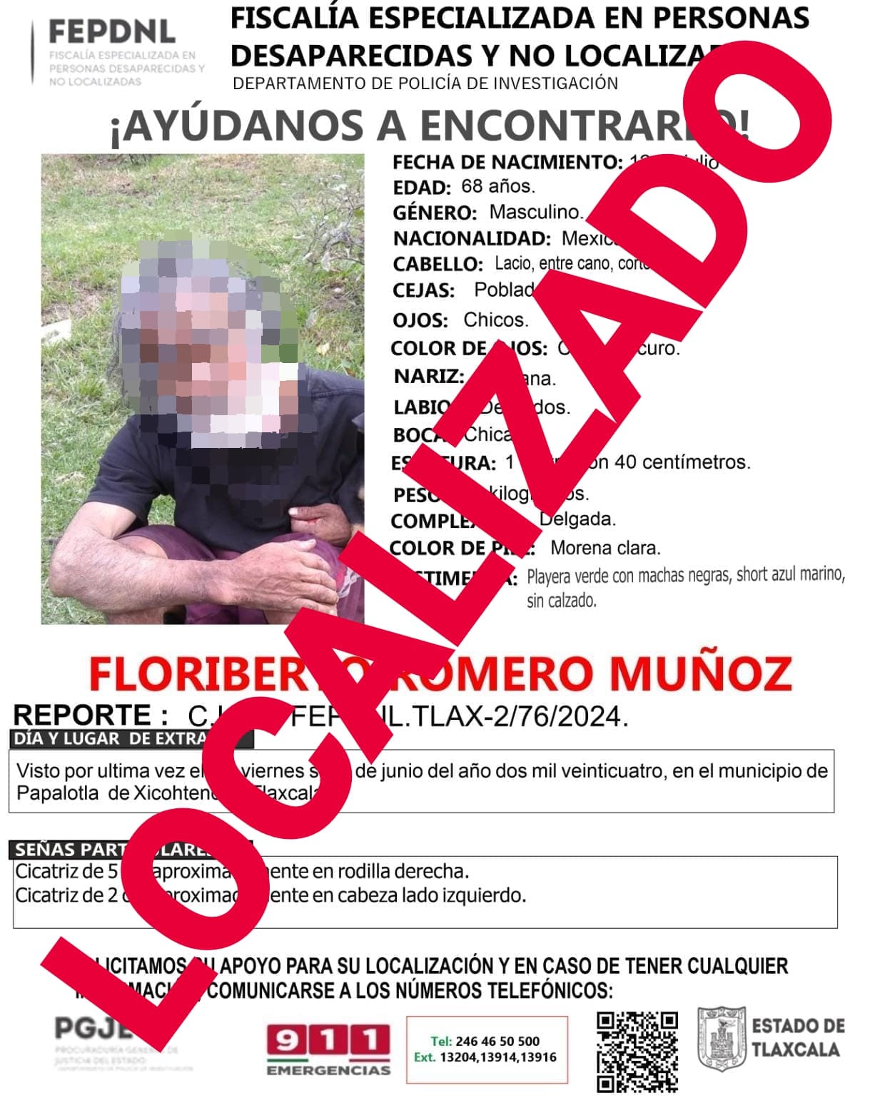 Tlaxcala, Tlax; 16 de julio de 2024 (PulsoRed) Agentes de la Policía de Investigación de la Fiscalía Especializada en Personas Desaparecidas y No Localizadas (FEPDNL) adscrita a la Procuraduría General de Justicia del Estado (PGJE) presentaron ante el Ministerio Público a un hombre reportado como desaparecido.