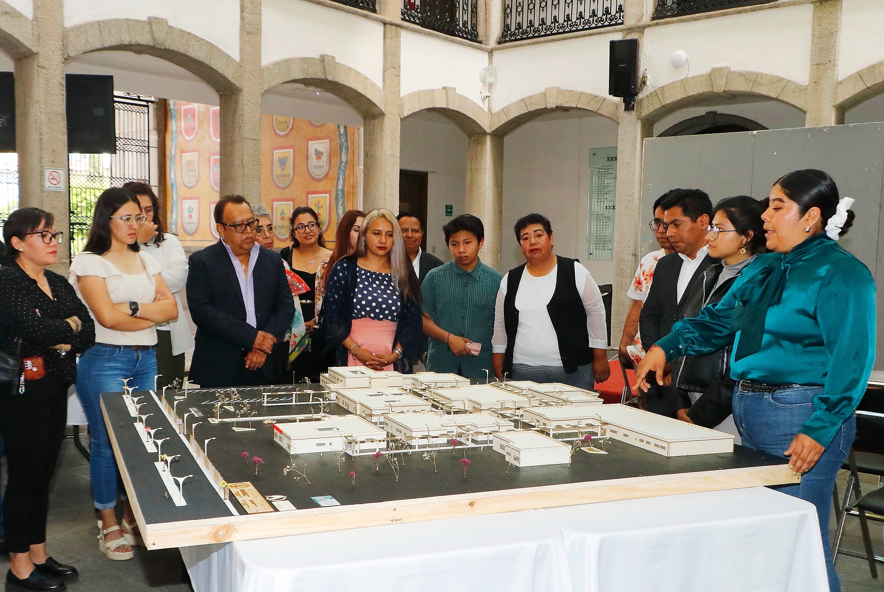 Tlaxcala, Tlax; 14 de junio de 2024 (PulsoRed) Como parte de la formación integral y del resultado del seminario de praxis profesional, la Facultad de Diseño, Arte y Arquitectura de la Universidad Autónoma de Tlaxcala (UATx), llevó a cabo la presentación de anteproyectos arquitectónicos consistentes en el planteamiento de los elementos fundamentales de futuras obras, tales como aspectos funcionales, estilísticos, constructivos y económicos, los cuales fueron diseñados por los estudiantes de octavo semestre de la Licenciatura en Arquitectura, realizada en el patio vitral del Congreso del Estado.