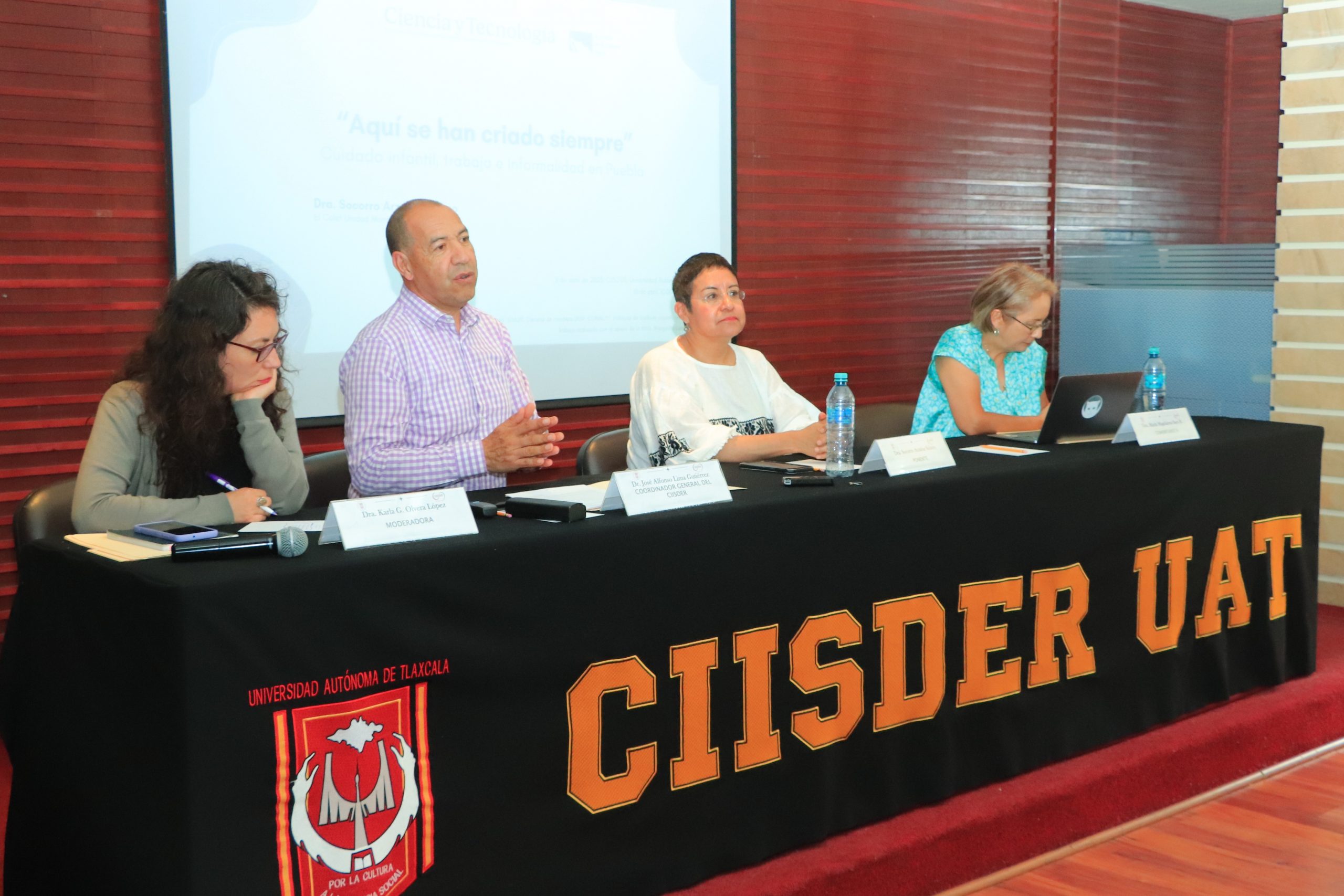 Tlaxcala, Tlax; 10 de abril de 2025 (PulsoRed) Para fortalecer el proceso formativo de sus estudiantes y ahondar en temas que cobran relevancia por su impacto en la sociedad, el Centro de Investigaciones Interdisciplinarias Sobre Desarrollo Regional de la Universidad Autónoma de Tlaxcala (CIISDER-UATx) invitó a la Doctora Socorro Arzaluz Solano, profesora e investigadora del Colegio de la Frontera Norte, sede de Monterrey, para presentar un avance de su trabajo de investigación titulado “Aquí se han criado siempre” cuidado infantil, trabajo e informalidad en el caso de Puebla, el cual forma parte del libro “Políticas de cuidado infantil trabajo y género”, que publicará en breve dicha institución.