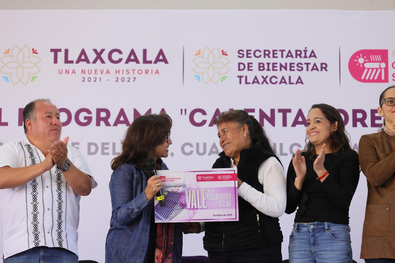 Tlaxcala, Tlax; 07 de octubre de 2025 (PulsoRed) La gobernadora Lorena Cuéllar Cisneros, y la presidenta honorífica del Comité Consultivo de Bienestar y Desarrollo Social, Fernanda Espinosa de los Monteros Cuéllar, encabezaron la puesta en marcha del programa “Calentadores Solares 2025” en el municipio de Cuaxomulco, con el propósito de mejorar la vida de las familias tlaxcaltecas en situación de vulnerabilidad.