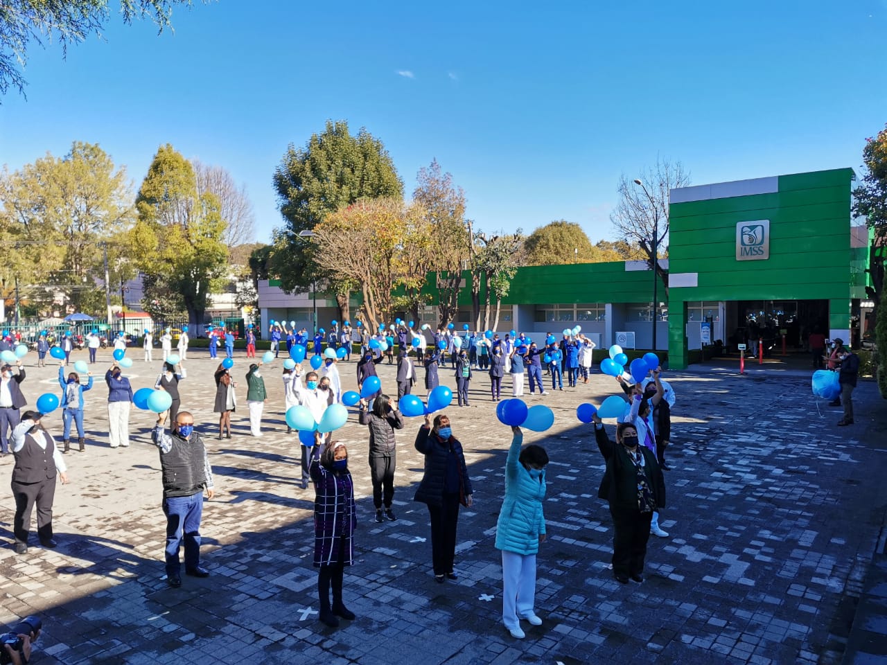 Los equipos de trabajo de las áreas médicas y administrativas, portaron una prenda en color azul, para formar parte del símbolo del hombre; el doctor Fernando Moncada Jiménez, titular de la Jefatura de Prestaciones Médicas, encabezó el acto simbólico, que representa el compromiso de la institución a favor de la prevención, para cuidar la Salud Integral del Hombre.
