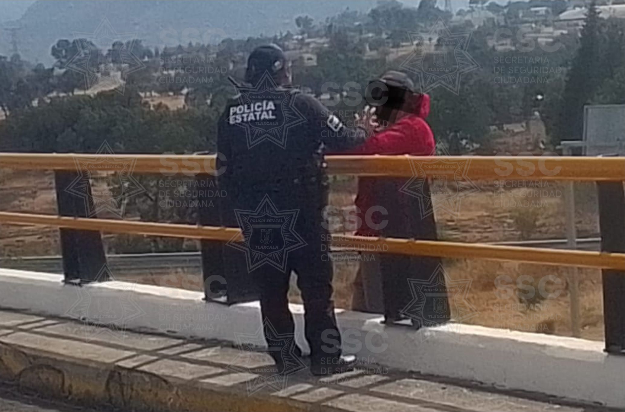 Tlaxcala, Tlax; 13 de enero de 2024 (PulsoRed) La Secretaría de Seguridad Ciudadana (SSC) evitó este sábado 13 de enero el intento de suicidio de una persona, quien amagó con arrojarse de lo alto de un puente peatonal.