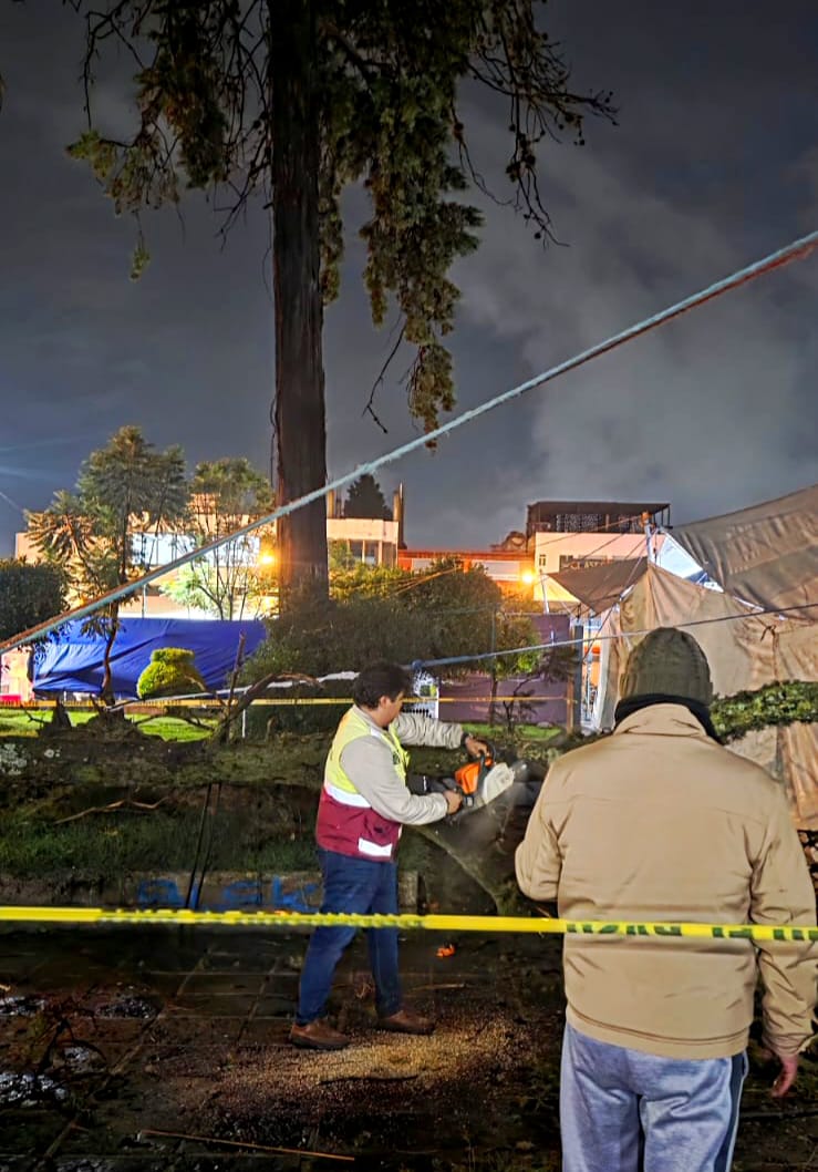 De forma inmediata, personal de Protección Civil acudió al lugar, realizando una evacuación preventiva de la zona para evitar cualquier riesgo a las personas presentes. Posteriormente, con el apoyo de equipo especializado, se procedió al retiro del árbol caído. En las labores también participó personal de las áreas de Gobernación y Protección al Medio Ambiente.