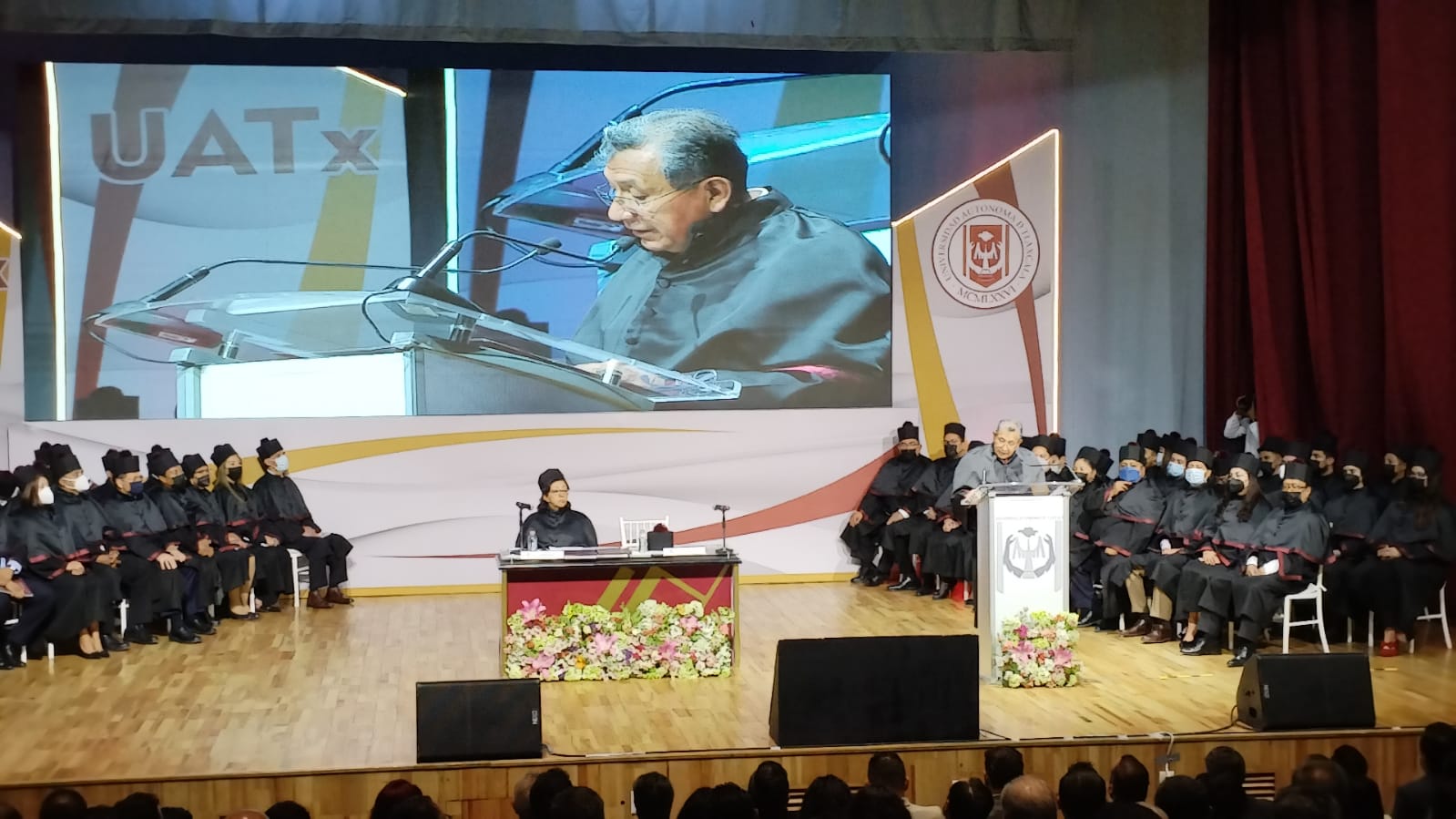 Ortiz Ortiz resaltó la entrega de dos mil 923 títulos de licenciatura y posgrado, combatiendo con ello el rezago ocasionado por la pandemia por Covid-19 y colocando así a la Autónoma de Tlaxcala como una de las universidades referentes en la región.