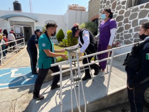 Elementos de la Dirección de Seguridad Pública, Tránsito y Protección Civil de Huamantla, participaron en diversas actividades como subir y bajar una rampa en silla de ruedas, y subir las escaleras en andaderas; así como una plática, todo ello con el acompañamiento del personal de la Unidad Básica de Rehabilitación (UBR).