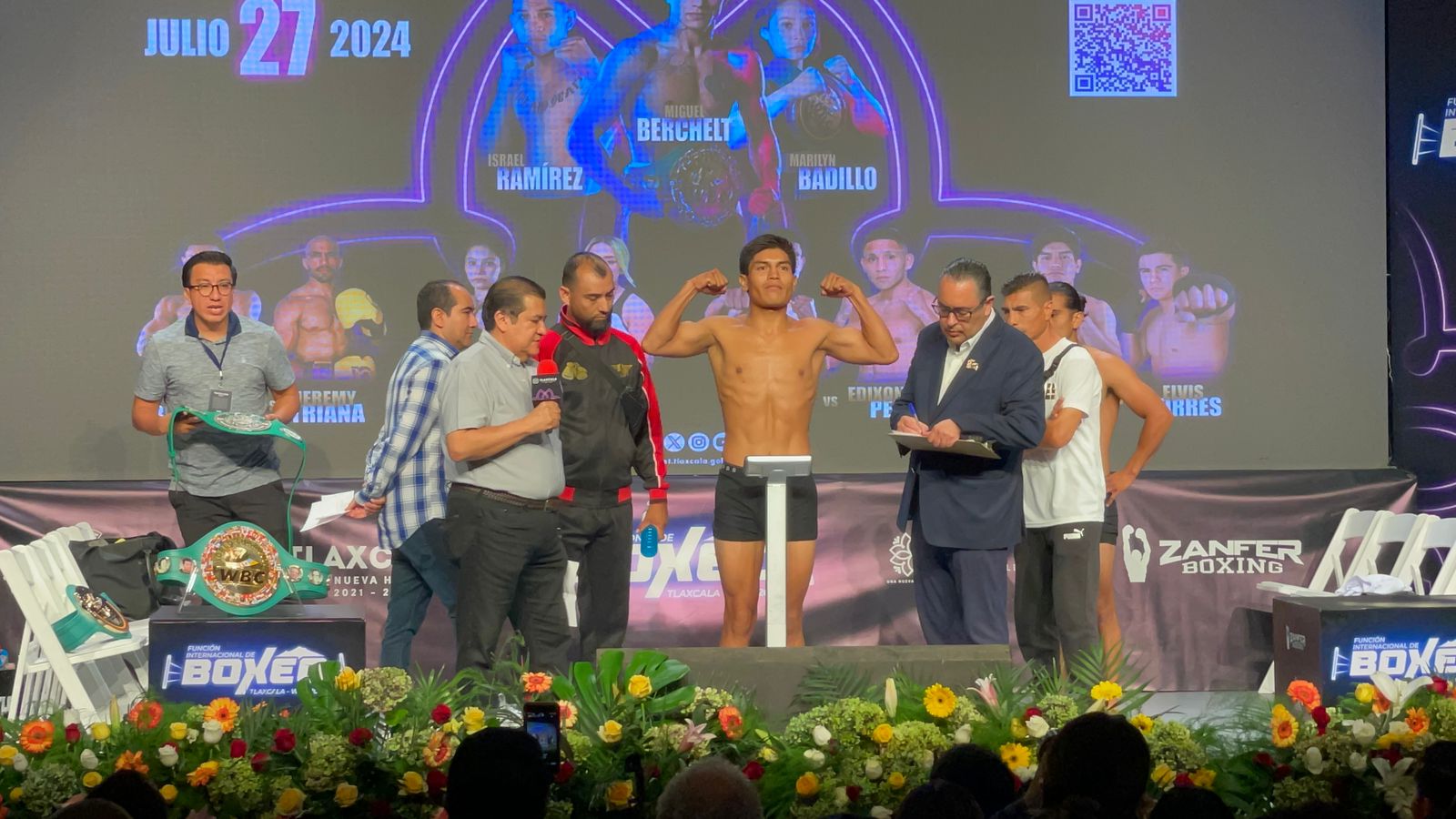 Tlaxcala, Tlax; 27 de julio de 2024 (PulsoRed) Este viernes, en presencia de autoridades estatales, escuelas y público en general, se realizó el pesaje de los peleadores que participarán en las contiendas programadas en la gran Función Internacional de Boxeo, que organiza el Gobierno del Estado, a través del Instituto del Deporte de Tlaxcala (IDET), y el Consejo Mundial de Boxeo (CMB).