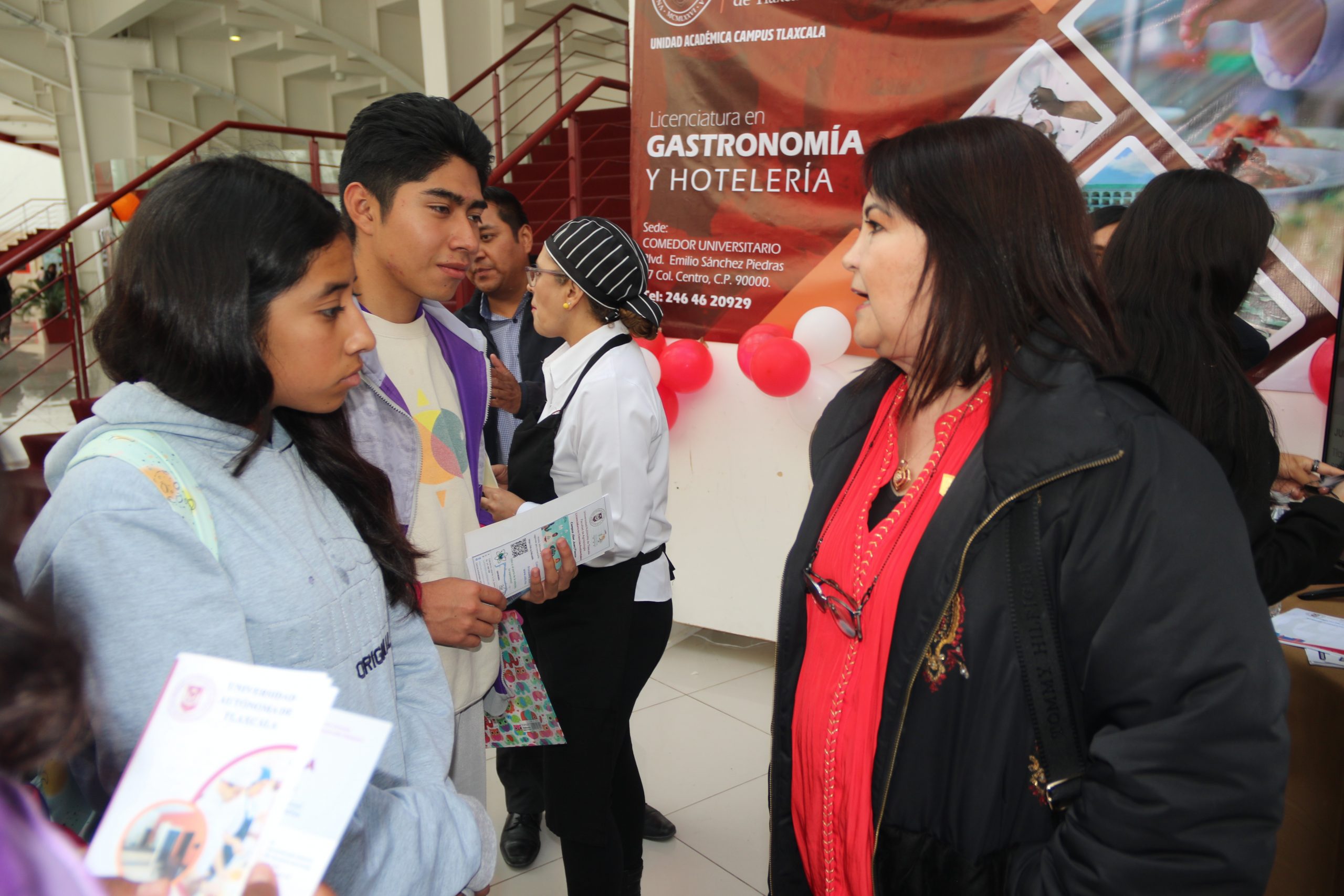 Asimismo, informó que para el periodo 𝐏𝐫𝐢𝐦𝐚𝐯𝐞𝐫𝐚 𝟐𝟎𝟐𝟔, la UATx ofrece 28 programas educativos, entre ellos la nueva 𝐋𝐢𝐜𝐞𝐧𝐜𝐢𝐚𝐭𝐮𝐫𝐚 𝐞𝐧 𝐆𝐚𝐬𝐭𝐫𝐨𝐧𝐨𝐦𝐢́𝐚 𝐲 𝐇𝐨𝐭𝐞𝐥𝐞𝐫𝐢́𝐚, presentada oficialmente durante esta edición de la feria, la cual responde a las necesidades sociales y demandas laborales actuales.