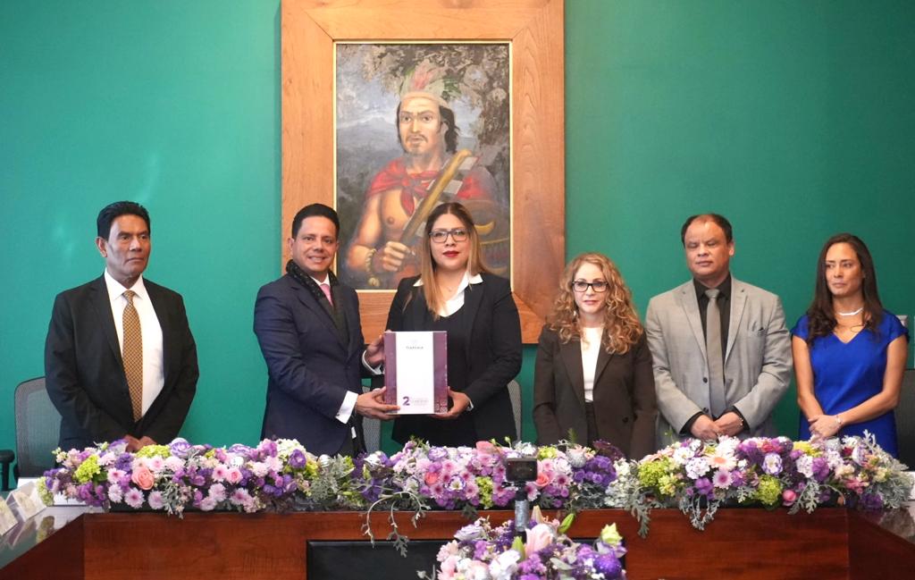 En el Salón Verde del Recinto Legislativo, las diputadas Mónica Sánchez Angulo y Marcela González Castillo, presidentas de la Mesa Directiva y de la Junta de Coordinación y Concertación Política, respectivamente, recibieron el documento que contiene los avances y logros de la actual administración estatal, a dos años de ejercicio legal, de manos del titular de la Secretaría de Gobierno, Luis Antonio Ramírez Hernández, en su calidad de representante personal de la Gobernadora Constitucional del Estado de Tlaxcala, Lorena Cuéllar Cisneros.