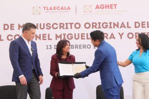 Tlaxcala, Tlax; 14 de febrero de 2026 (PulsoRed) El Gobierno del Estado de Tlaxcala recibió en donación el manuscrito original del siglo XIX del coronel Miguel Lira y Ortega, documento de alto valor histórico que pasa a resguardo del Archivo General e Histórico del Estado. El acto fue encabezado por la gobernadora Lorena Cuéllar Cisneros, quien reconoció el gesto del donante como una contribución invaluable a la memoria colectiva de la entidad.