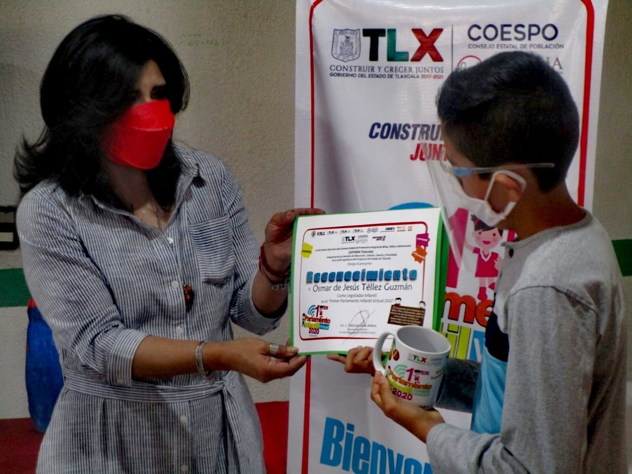 Patricia López Aldave, titular del Consejo Estatal de Población (Coespo) y Secretaria Ejecutiva del Sipinna-Tlaxcala, indicó que se entregaron reconocimientos y un obsequio a las y los 25 legisladoras y legisladores infantiles del Primer Parlamento Infantil Virtual 2020.
