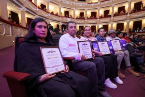 *La gobernadora Lorena Cuéllar encabezó la ceremonia de premiación en el Teatro Xicohténcatl, en el marco del Día del Artesano; reconoce titular de Fonart trabajo de la mandataria estatal
