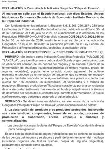 Tlaxcala, Tlax; 25 de febrero de 2026 (PulsoRed) El Instituto Mexicano de la Propiedad Industrial (IMPI) publicó en el Diario Oficial de la Federación la Declaración de Protección de la Indicación Geográfica «Pulque de Tlaxcala», con lo cual esta bebida tradicional de origen prehispánico gozará de las previsiones establecidas en la Ley Federal de Protección a la Propiedad Industrial.