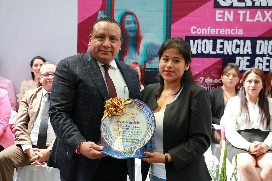 Tlaxcala, Tlax; 7 de septiembre 2019 (Pulso) La Organización Civil “Mujeres con Poder” entregó un reconocimiento al titular de la Procuraduría General de Justicia del Estado (PGJE) José Antonio Aquiahuatl Sánchez, por su trabajo en favor de la atención de delitos en contra de las mujeres, lo que es una muestra del compromiso y trabajo institucional para beneficio de este sector de la población.
