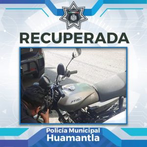 Huamantla, Tlax; 9 de marzo de 2023 (PulsoRed) Elementos de la Dirección de Seguridad Pública de Huamantla, recuperaron la tarde del 8 de marzo una motocicleta con reporte de robo en el centro histórico de la ciudad.