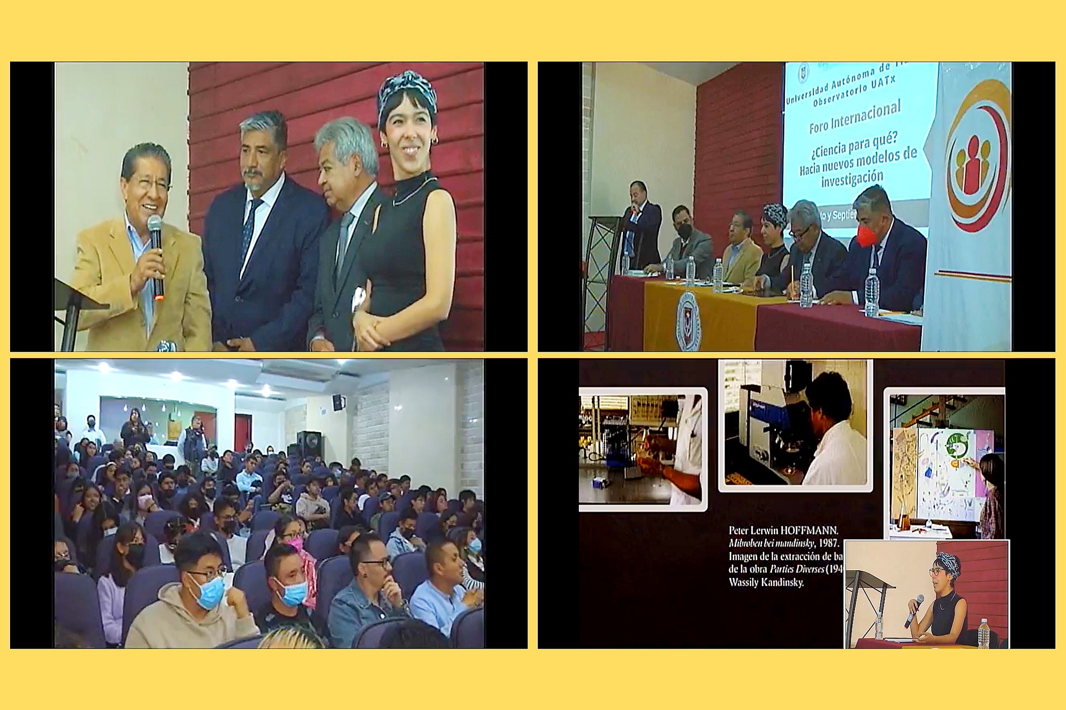Tlaxcala, Tlax; 07 de septiembre de 2023 (PulsoRed) Con la presentación de la disertación intitulada: “Bioarte: o sobre las formas en que la ciencia cobra vida”, a cargo de la Doctora Amanda Rosa Pérez Morales, profesora y miembro del Sistema Nacional de Investigadores (SNI) de la Benemérita Universidad Autónoma de Puebla (BUAP), se dio continuidad a las actividades del “Foro Internacional ¿Ciencia para qué? Hacia nuevos modelos de investigación”, que efectúa la Universidad Autónoma de Tlaxcala (UATx), a través del Observatorio Universitario (OU), que dirige el Doctor René Elizalde Salazar, en coordinación con la ANUIES y la AMPEI.