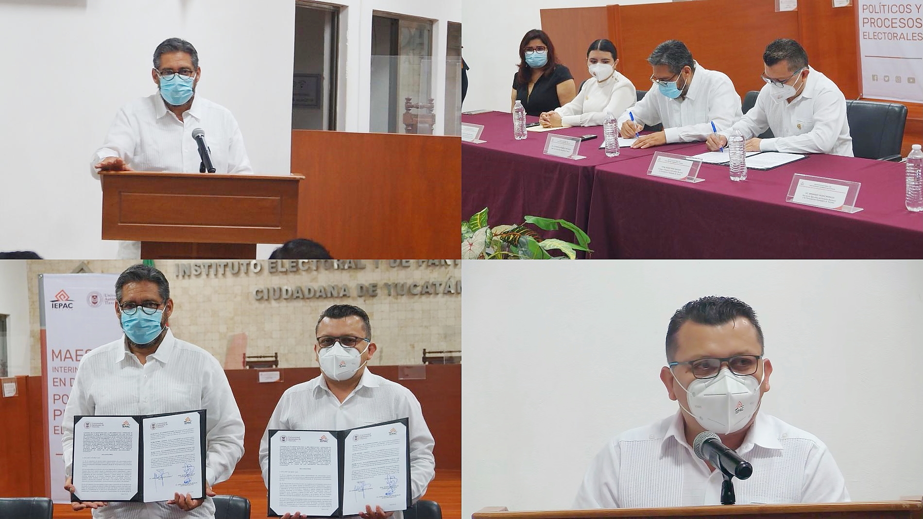 Tlaxcala, Tlax; 23 de febrero de 2022 (PulsoRed) Para contribuir a la actualización del conocimiento en materia de escenarios democráticos y la profesionalización de quienes están insertos en este ámbito, el Dr. Luis González Placencia, Rector de la Universidad Autónoma de Tlaxcala (UATx), y el Mtro. Moisés Bates Aguilar, Consejero Presidente del Instituto Electoral y de Participación Ciudadana de Yucatán (IEPAC), signaron un convenio de colaboración para la impartición de la Maestría Interinstitucional en Derechos Políticos y Procesos Electorales.