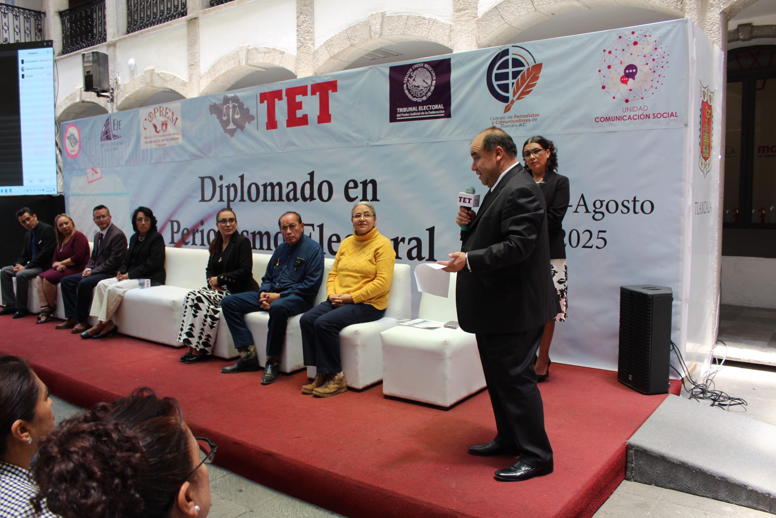 Cabe señalar que en el presídium, también estuvieron presentes la Magistrada Esther Terova Cote, el Presidente de la Confederación de Periodistas de México (Coprem) en Tlaxcala, Virgilio Osorio Nava; el Presidente del Colegio de Periodistas y Comunicadores de Tlaxcala, Alejandro Aguilar Gómez, la directora de Síntesis Tlaxcala, Korina Rubio Sánchez, el jefe de Información de Radio Universidad, Alejandro Paredes Ramírez y la académica Emelia Higueras Zamora, profesora-investigadora del Colegio de Tlaxcala, como representantes de las 90 personas registradas para cursar este diplomado.