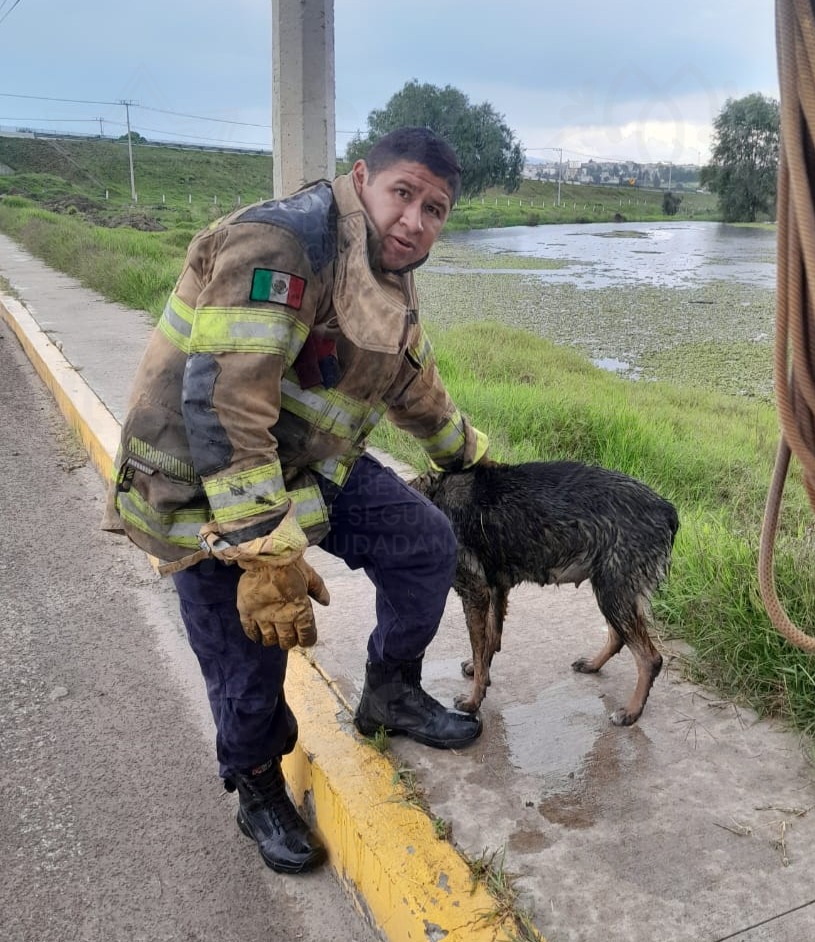En otro hecho distinto, pero ahora en San Sebastián Atlahapa, en la capital, los elementos del estado recibieron un reporte de un canino en situación de calle atrapado en un jagüey, esto cerca del bulevar Gasoducto.