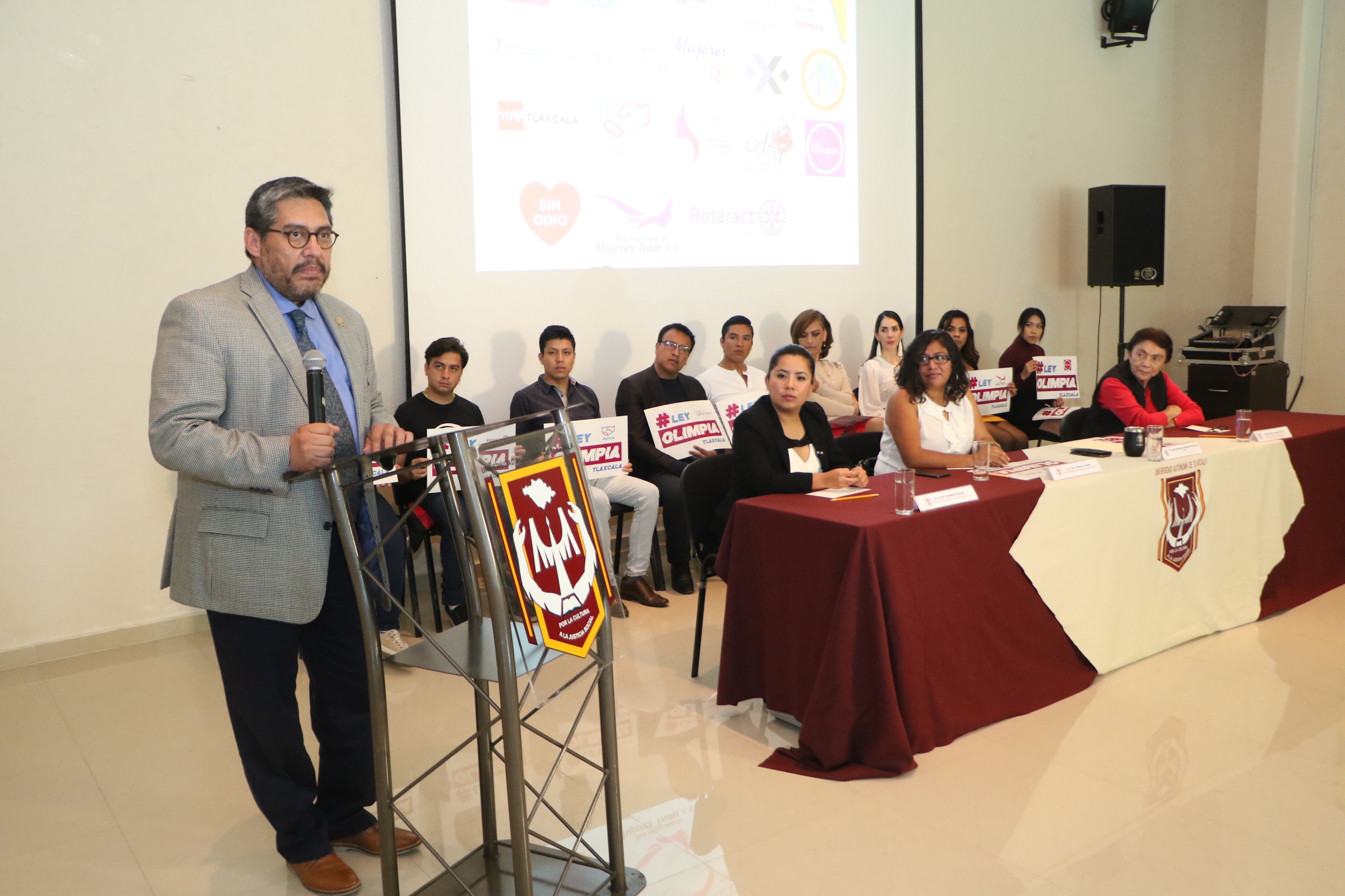 Tlaxcala, Tlax; 15 de noviembre de 2019 (Pulso) En el marco de las alianzas estratégicas y del impulso al fortalecimiento de las iniciativas que redundan en beneficios para la sociedad en general, el Dr. Luis González Placencia, Rector de la Universidad Autónoma de Tlaxcala (UATx), presidió el pronunciamiento a favor de la “Ley Olimpia”, realizado en el auditorio de la Residencia Universitaria.