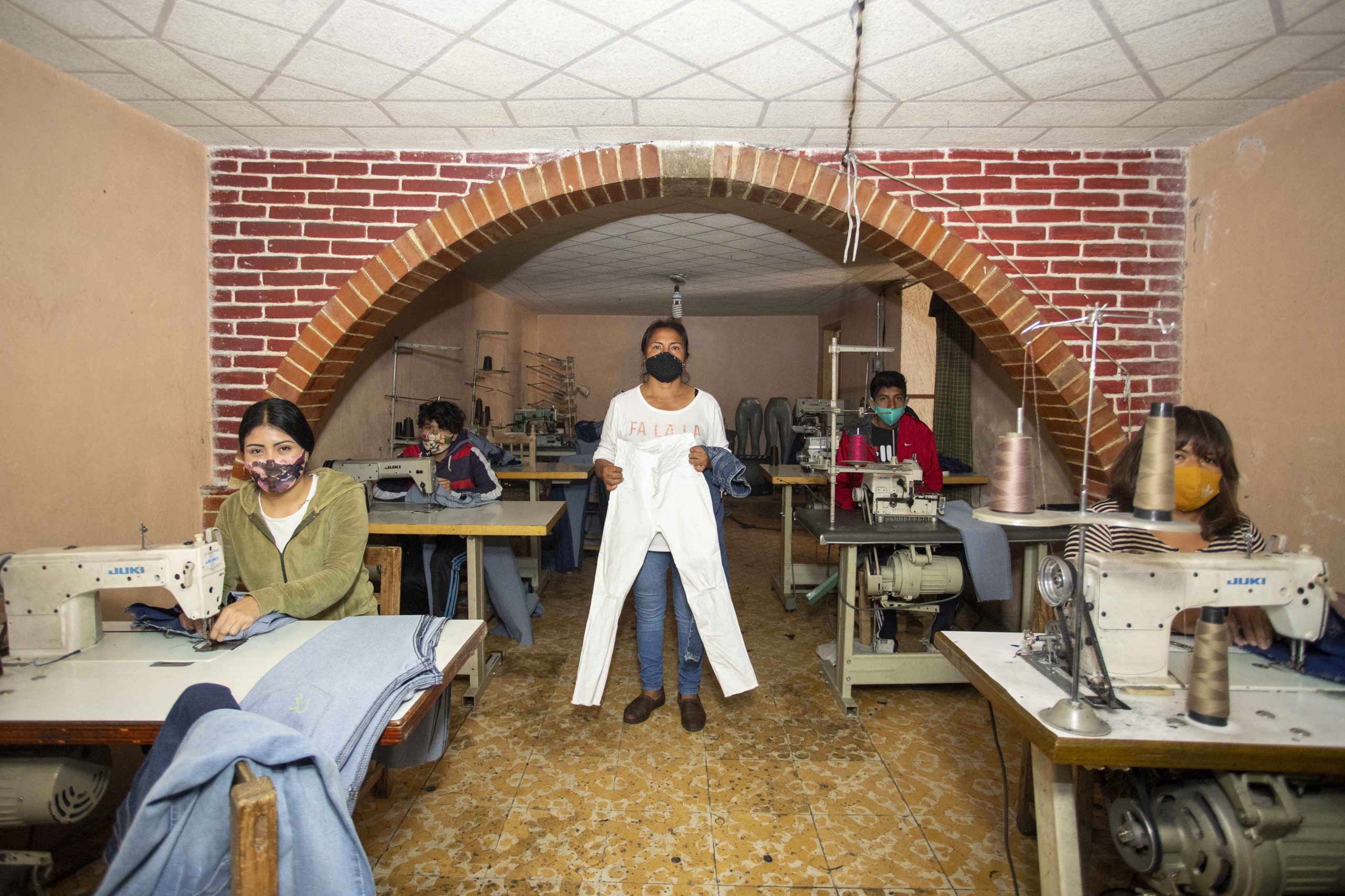 Ángela Guadalupe Hueyoc Méndez, de 49 años de edad y beneficiaria de la estrategia, se dedica a confeccionar y comercializar pantalones de mezclilla desde hace cinco años; sin embargo, debido a la falta de un ingreso fijo su proyecto se había detenido.