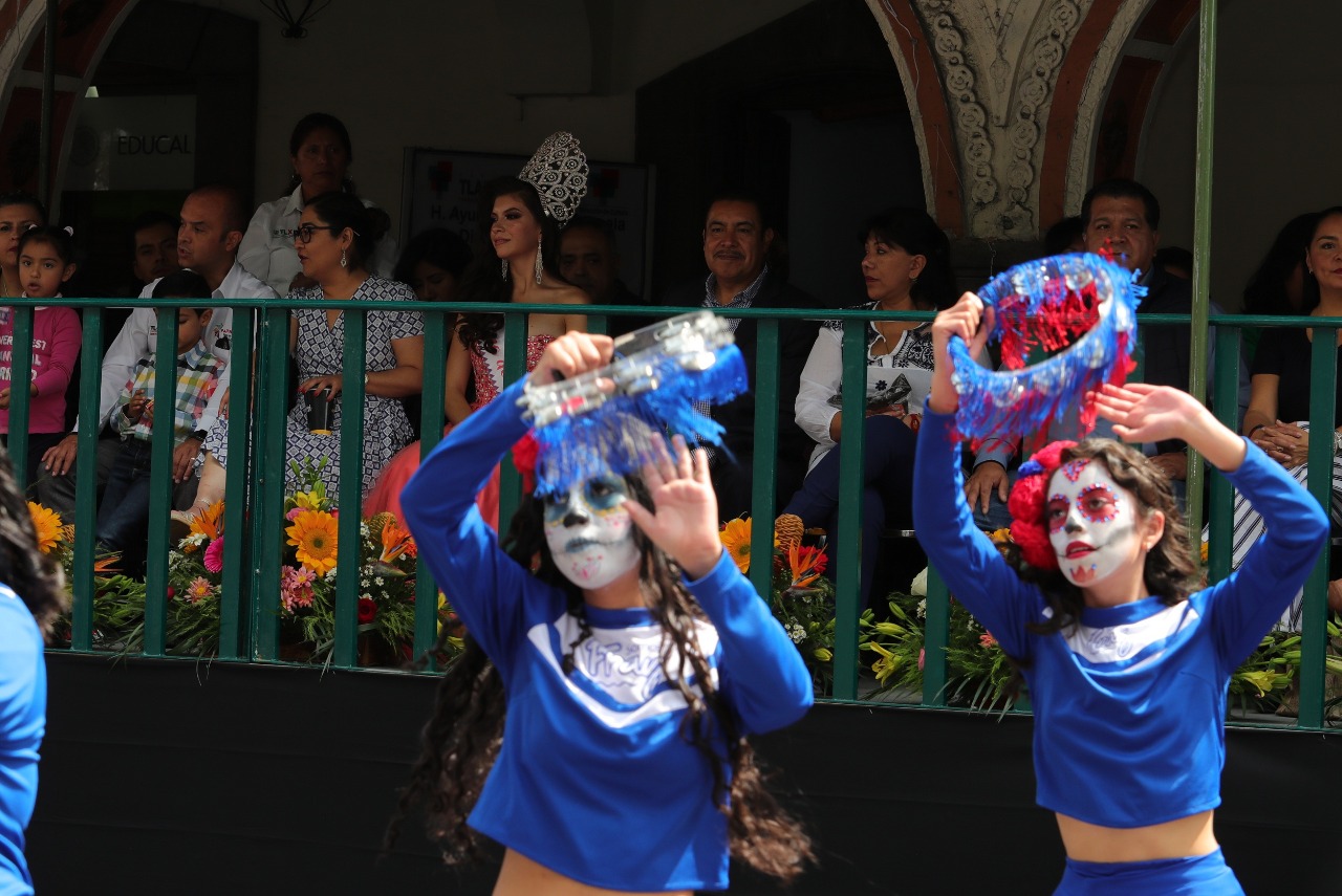 En un ambiente de armonía, alegría y júbilo, familias completas disfrutaron del paso de los contingentes que recordaron el tradicional Día de Muertos, encabezados por instituciones de educación básica, media superior y superior, municipios, el sector privado y camadas de huehues que dieron alegría y color al evento.