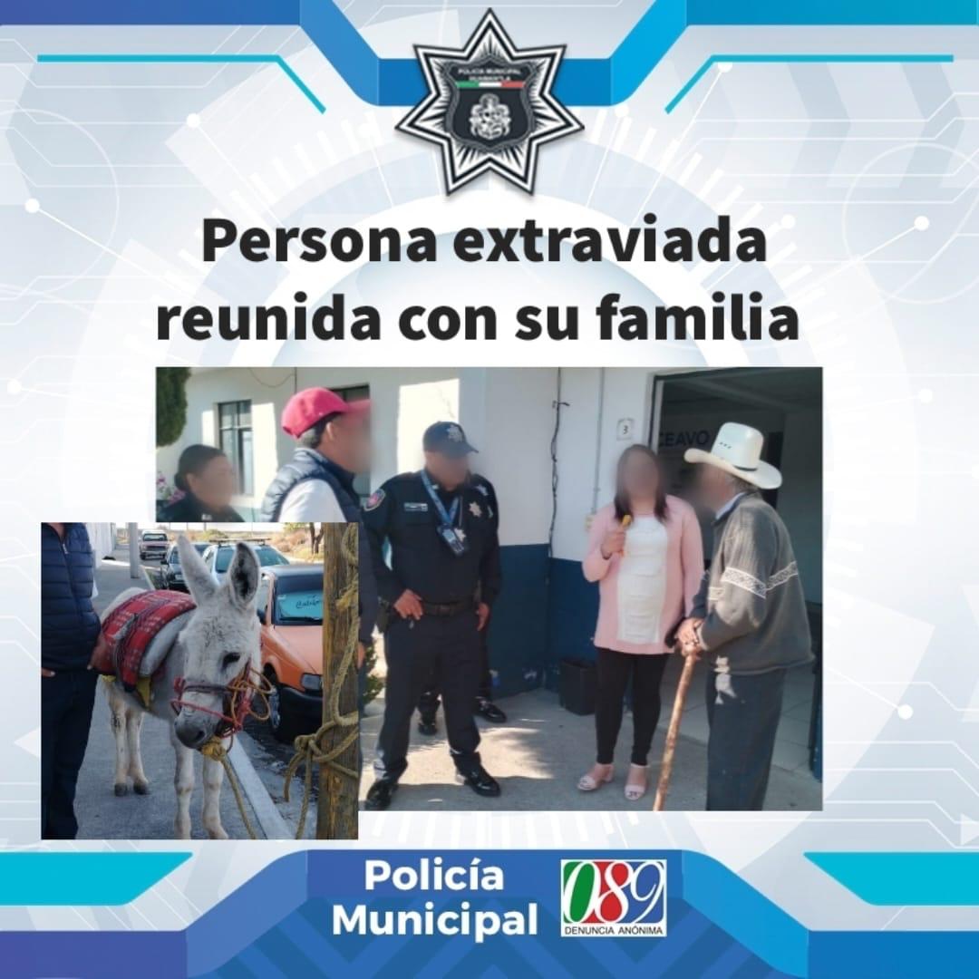 Ante esta situación, la persona es trasladada a las instalaciones de la Comisaría municipal, donde dan parte a la Procuraduría del Adulto Mayor del Sistema Municipal DIF Huamantla, quien luego de localizar a sus familiares, hace entrega a su hijo, mismo que fue localizado con el apoyo del presidente de comunidad.