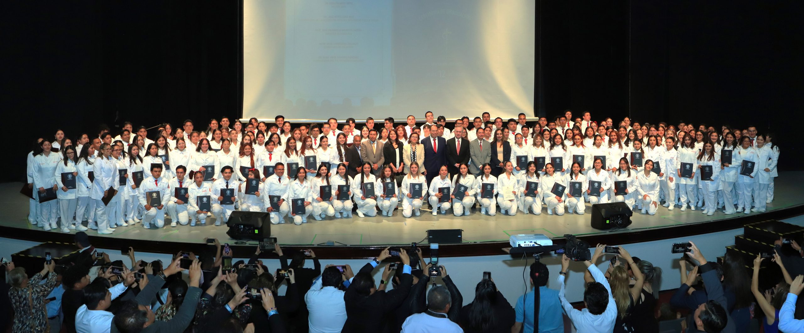 Durante este acto formal celebrado en el Centro Cultural Universitario, ante padres de familia, docentes y estructura directiva de la Facultad y de la Institución, el Maestro Alejandro Palma Suárez, Secretario Académico, en representación del Doctor Serafín Ortiz Ortiz, Rector de la UATx, aseguró que la Medicina se caracteriza por ser una profesión que exige conocimientos profundos y una gran humanidad, empatía y coraje. A partir de este momento, dijo a los egresados, ustedes serán la voz de la esperanza de los pacientes y la mano que los sostiene para seguir adelante, porque el mundo necesita médicos comprometidos, con pasión y capaces de mejorar la vida de las personas.