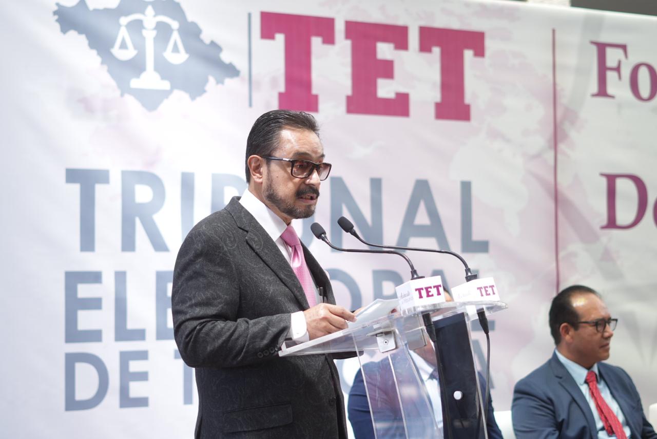 Por su parte, el Magistrado presidente del TET Miguel Nava Xochitiotzi, se expresó sobre el Palacio Legislativo como el recinto histórico de nuestro estado, donde se llevó a cabo el evento, “representa una oportunidad invaluable para reafirmar nuestro compromiso con los derechos electorales. Qué mejor lugar para llevar a cabo este evento que el Congreso, un edificio emblemático donde se toman las decisiones más importantes que afectan a nuestra comunidad, este Congreso no sólo es un símbolo de nuestra democracia, sino también un espacio donde se debaten y se construyen las políticas que guían nuestro futuro. Al realizar este evento aquí, destacamos la importancia de la participación ciudadana y el respeto por los procesos electorales que son fundamentales para el fortalecimiento de nuestra sociedad”.