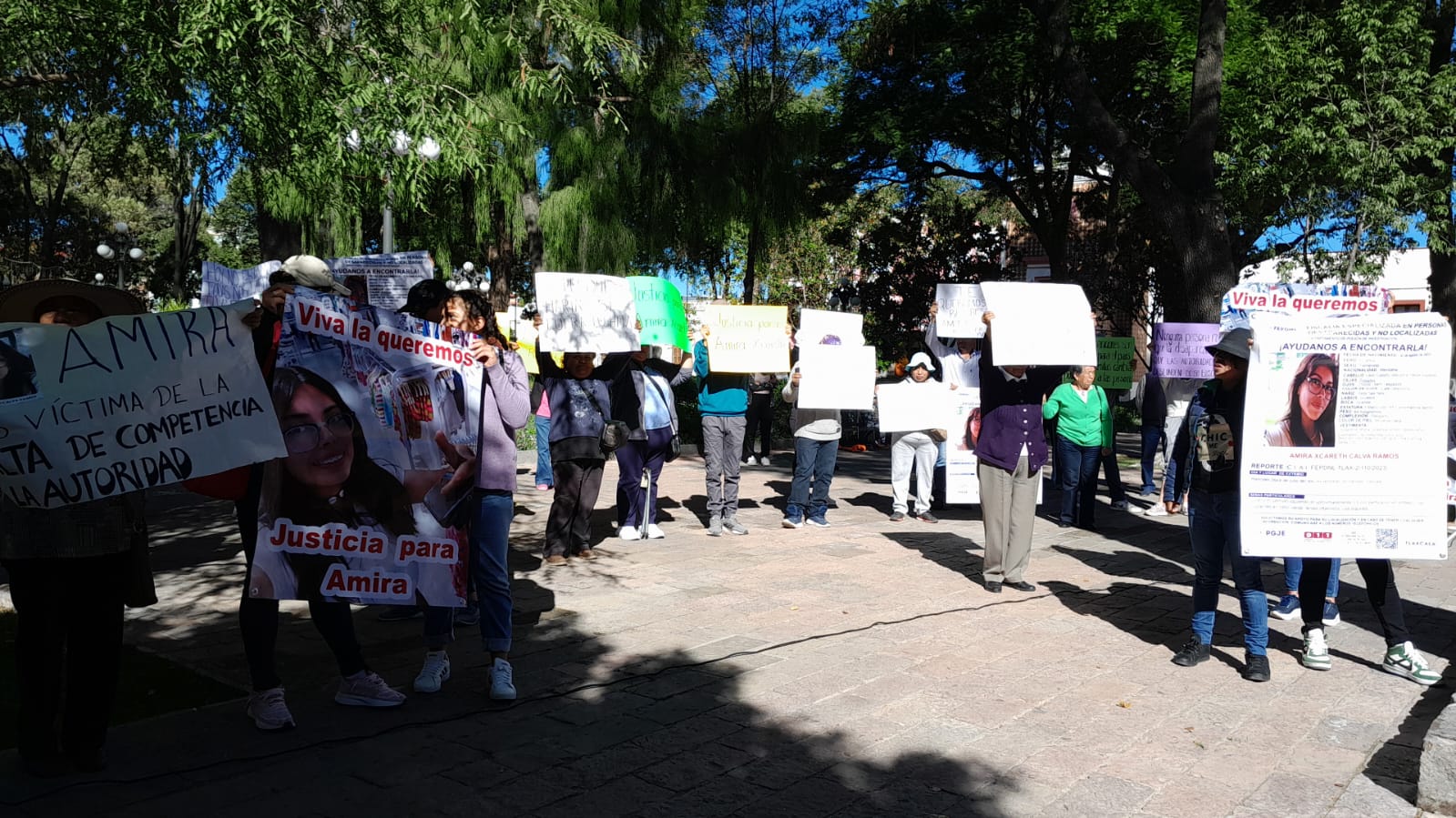 Tlaxcala, Tlax; 20 de julio de 2023 (Selene Sosa) Ante la frustración por el aparente desinterés mostrado por parte de las autoridades encargadas de la búsqueda de personas desaparecidas, este jueves, familiares de Amira Xcareth Calva Ramos, se manifestaron frente a Palacio de Gobierno para exigir transparencia y agilidad en las acciones de búsqueda.