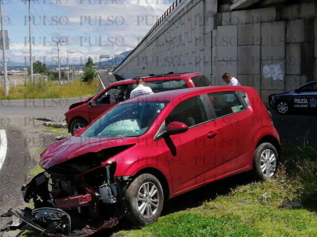 Fue alrededor de las 13:00 horas, a la altura del cruce debajo del Libramiento Tlaxcala en el punto ya referido donde un automóvil tipo Sonic y una camioneta Quest, ambas de color rojo, se impactaron de manera frontal para quedar en la zona de acotamiento.