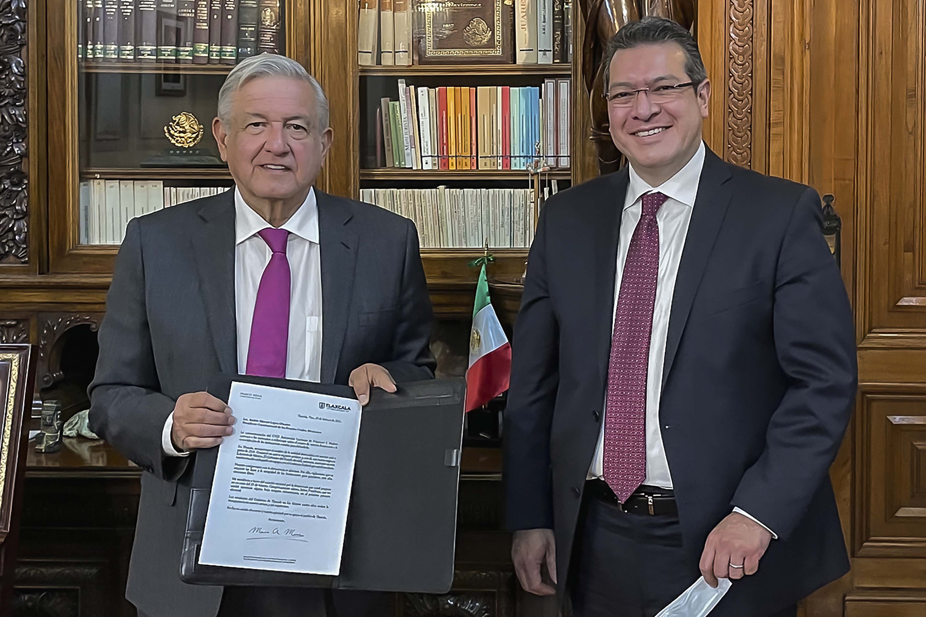 En su cuenta de Twitter, el Presidente Andrés Manuel López Obrador informó: «Me reuní con el gobernador de Tlaxcala, Marco Mena Rodríguez. Me expresó su decisión de adherirse al Acuerdo Nacional por la Democracia. Es el primer mandatario en responder a la convocatoria que hicimos el 23 de febrero mediante una carta pública. Celebro que coincidamos».