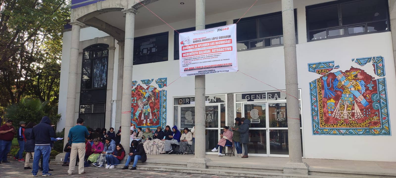 Tlaxcala, Tlax; 28 de noviembre de 2023 (Selene Sosa) Este martes, trabajadores administrativos del Colegio de Bachilleres de Tlaxcala (COBAT) adscritos al Sindicato de Trabajadores Administrativos y de Intendencia (STAICOBAT) se sumaron al paro nacional para exigir su aumento salarial, promesa del Presidente de México.