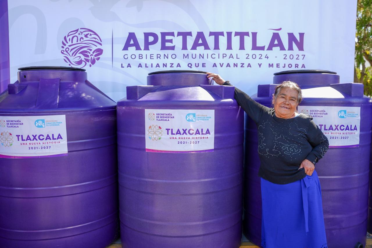 En Apetatitlán, 76 familias fueron beneficiadas con estos equipos que representan un apoyo directo a su bienestar, al permitirles almacenar agua de forma segura y contar con mayores condiciones de higiene, tranquilidad y cuidado dentro del hogar.