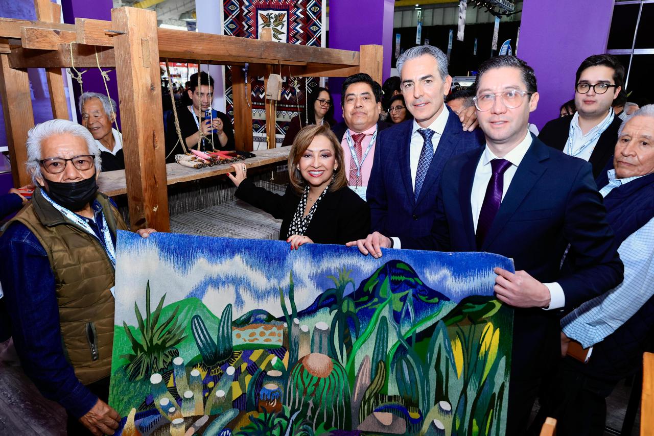 Cuéllar Cisneros destacó la participación de ocho artistas tlaxcaltecas reconocidos a nivel nacional e internacional por su innovación y calidad en la fabricación de rebozos, blusas de pepenado, gabanes, tapetes, sarapes, camisas, entre otros productos.