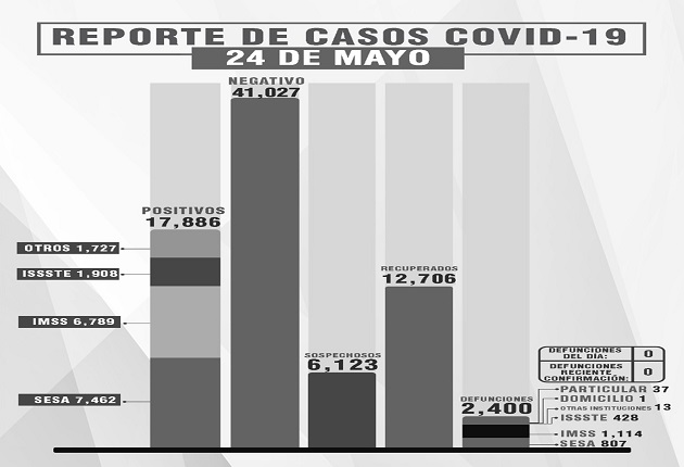 Mientras, del total de fallecimientos, 807 se han registrado en la SESA, mil 114 en el IMSS, 428 en el Issste, 13 en otras instituciones, uno en domicilio particular y 37 en hospital privado.