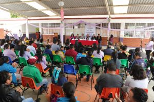 En tanto, en la Secundaria Técnica número 51 “Benito Juárez García”, ubicada en la comunidad de Tlacomulco, en la capital del estado, se inauguró la construcción de una techumbre en el patio cívico, con una inversión de 2 millones 59 mil 889 pesos, en beneficio de 164 estudiantes y la comunidad escolar de 350 personas, entre madres, padres de familia, tutores y trabajadores educativos.