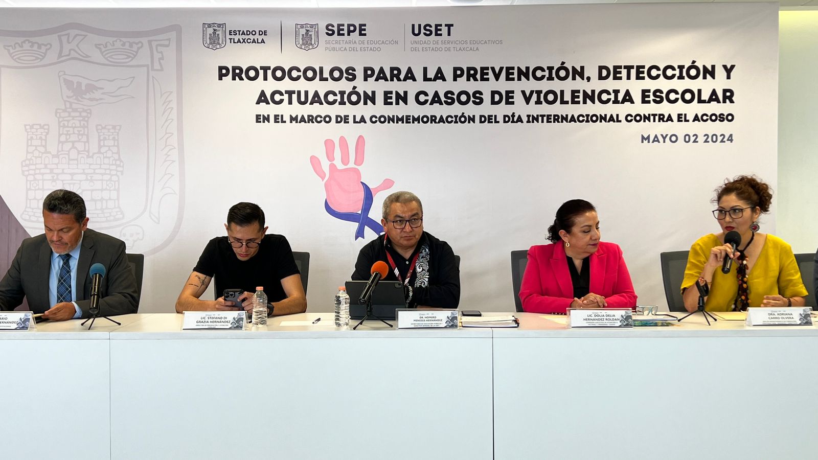 Tlaxcala, Tlax; 06 de mayo de 2024 (PulsoRed) En un esfuerzo por abordar de manera efectiva el problema del acoso escolar, la Secretaría de Educación Pública del Estado y la Unidad de Servicios Educativos del Estado de Tlaxcala (SEPE-USET) presentaron una serie de protocolos para la prevención, detección y actuación integral en casos de violencia escolar en instituciones de nivel básico.