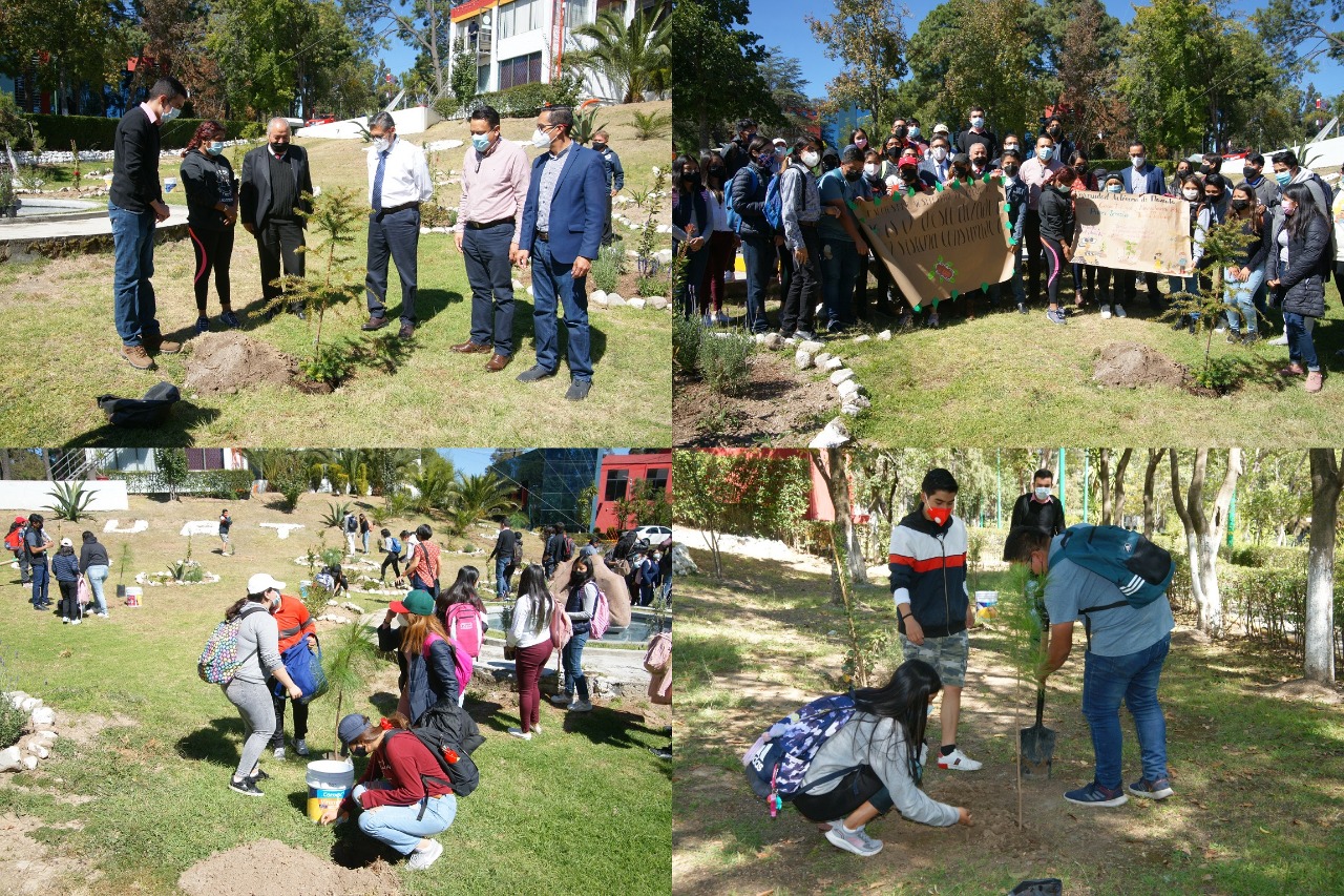 Tlaxcala, Tlax; 24 de noviembre de 2021 (Pulso Red) Para continuar con la cultura de responsabilidad con el medio ambiente, la Universidad Autónoma de Tlaxcala (UATx), a través de los alumnos de primer semestre de la Licenciatura en Ciencias Políticas y Administración Pública, que se imparte en la Facultad de Derecho, Ciencias Políticas y Criminología, efectuó la siembra de árboles en el área de rectoría.