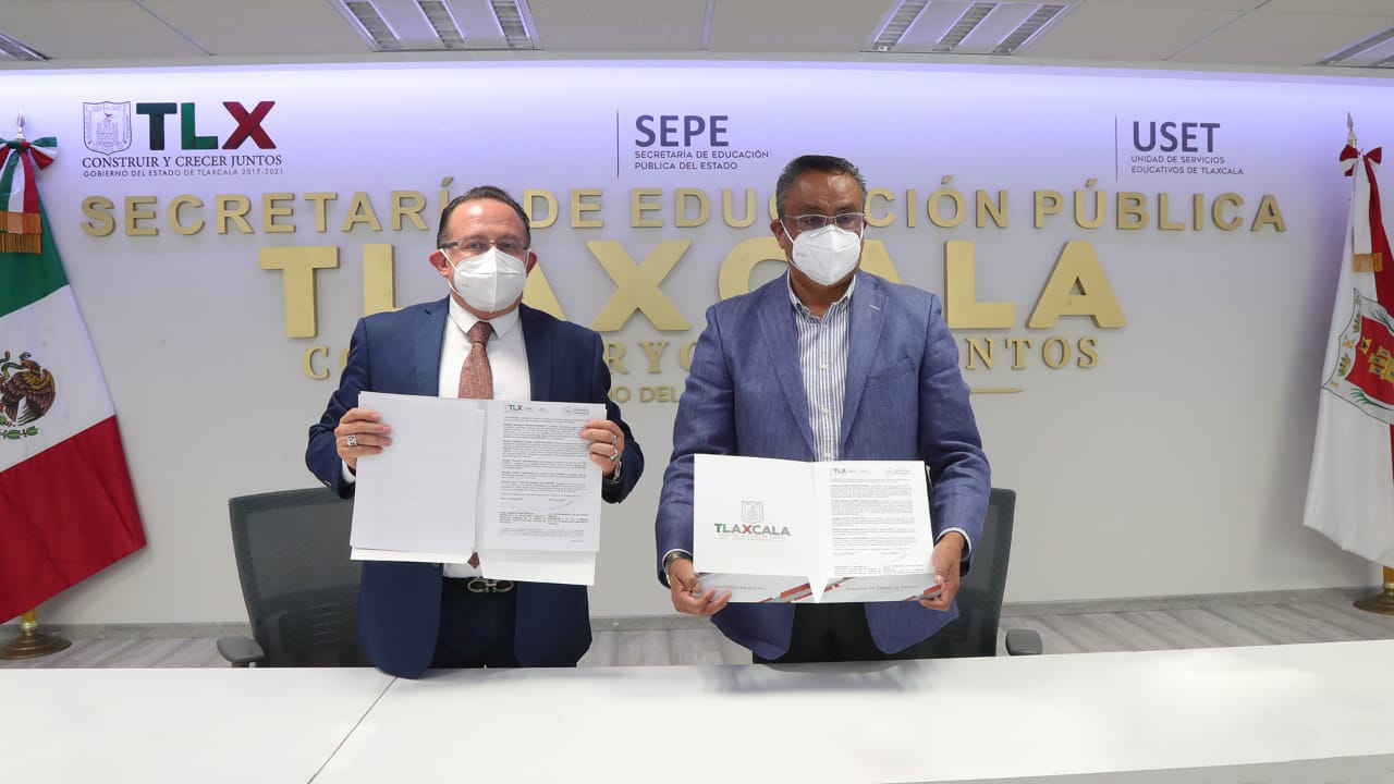 Este convenio lo signaron el Presidente de este Organismo Autónomo, Víctor Manuel Cid del Prado Pineda y Roberto Lima Morales, Secretario de Educación Pública en el estado.