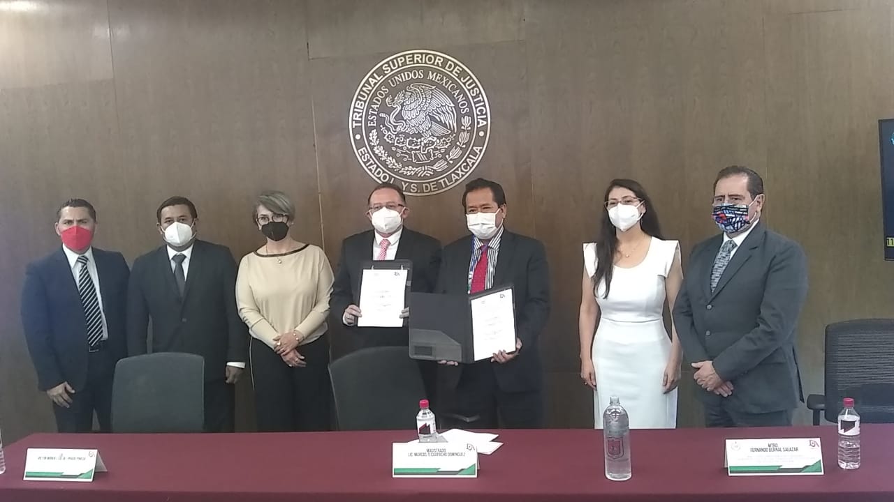 Tlaxcala, Tlax; 11 de marzo de 2021 (Pulso) La Comisión Estatal de Derechos Humanos, este día signó convenio de colaboración con el Tribunal de Justicia Administrativa, con el objeto de establecer las bases y mecanismos de colaboración entre el TJA Y la CEDH para desarrollar actividades de capacitación, difusión, promoción y divulgación en materia de Derechos Humanos.