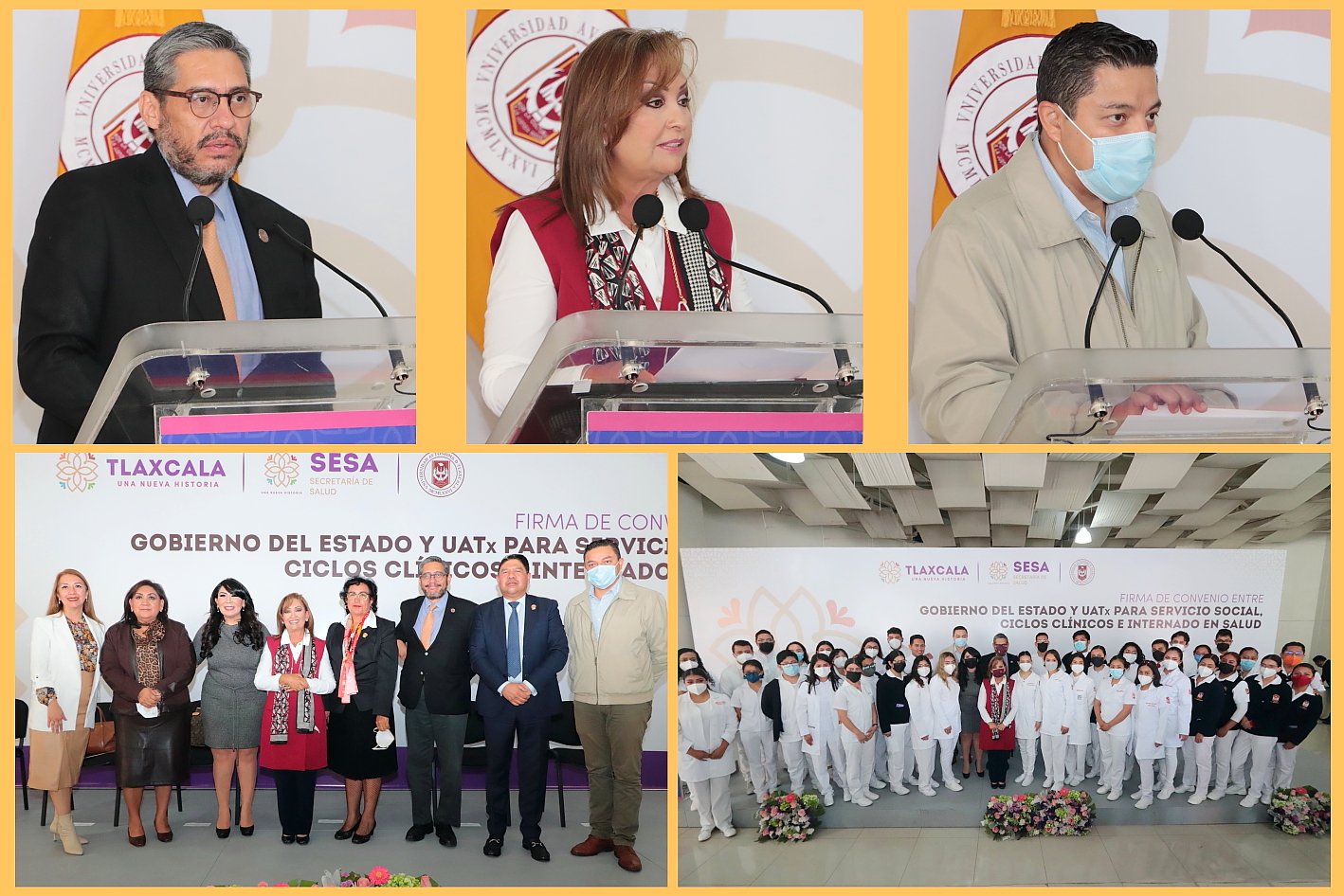 Tlaxcala, Tlax; 23 de junio de 2022 (PulsoRed) El Rector de la Universidad Autónoma de Tlaxcala (UATx), Dr. Luis Armando González Placencia, y la Gobernadora del Estado, Lic. Lorena Cuellar Cisneros, firmaron un convenio de colaboración para que estudiantes de Medicina, Enfermería, Odontología y Nutrición presten sus servicios en las instituciones públicas de la Secretaría de Salud (SESA) del estado.
