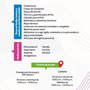 🙏🏻 Acude a los centros de acopio ubicados en la presidencia municipal, el SMDIF y la CAPAMA.
