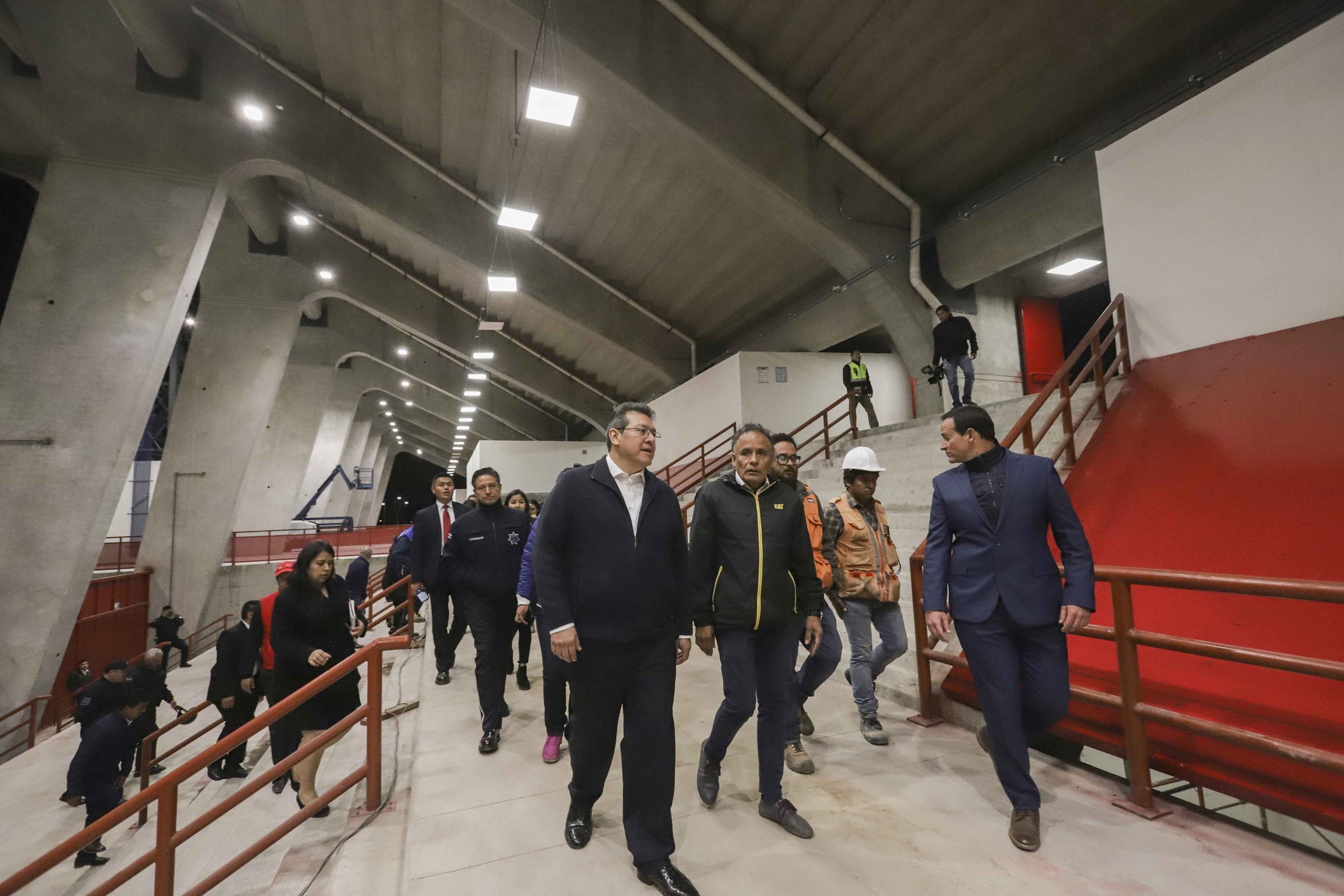 Acompañado por los titulares de la Secretaría de Obras Públicas, Desarrollo Urbano y Vivienda, de Seguridad Ciudadana y de Turismo, así como de la Coordinación Estatal de Protección Civil, Marco Mena recorrió las áreas de estacionamiento, mantenimiento, baños, regaderas y gradas, entre otros espacios.