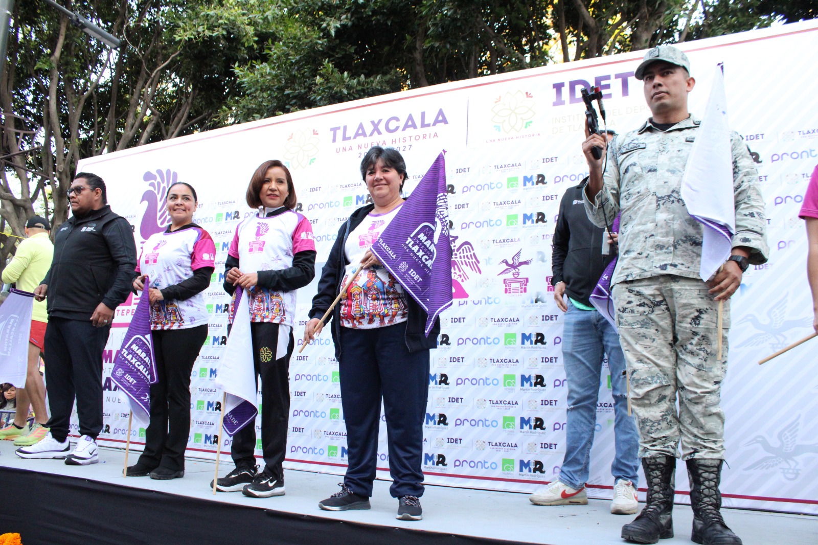 Junto al Secretario de Gobierno, Sergio González Hernández y la directora del Instituto del Deporte de Tlaxcala, Madai Pérez, la alcaldesa capitalina dio salida a los atletas, frente a las instalaciones de la Presidencia Municipal, a las 6:30 de la mañana, primero  a corredoras y corredores  adaptados y débiles visuales; posteriormente, diez minutos después a los deportistas en los  21 kilómetros y finalmente a la 6:55 am  a los de 5 kilómetros.