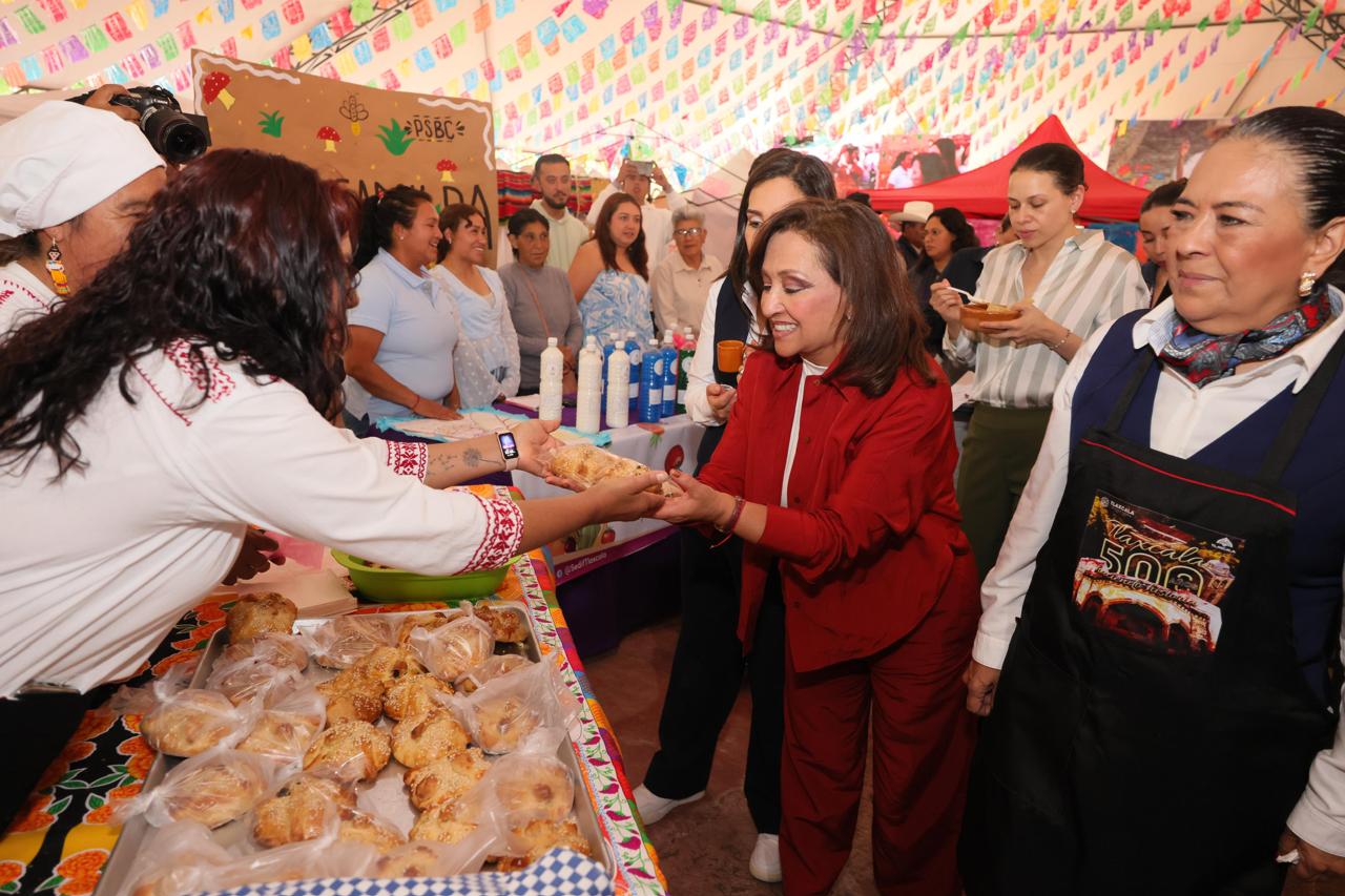 Tlaxcala, Tlax; 07 de octubre de 2025 (PulsoRed) La gobernadora, Lorena Cuéllar Cisneros; la presidenta honorífica del Sistema Estatal para el Desarrollo Integral de la Familia (Sedif), Mariana Espinosa de los Monteros Cuéllar, y la titular del Sistema Nacional DIF (Sndif), Rocío García Pérez, inauguraron la muestra gastronómica “500 años nutriendo con sabor”, en el marco de la conmemoración del Día Mundial de la Alimentación 2025 y de la celebración por los 500 años de la Fundación de la Ciudad de Tlaxcala.