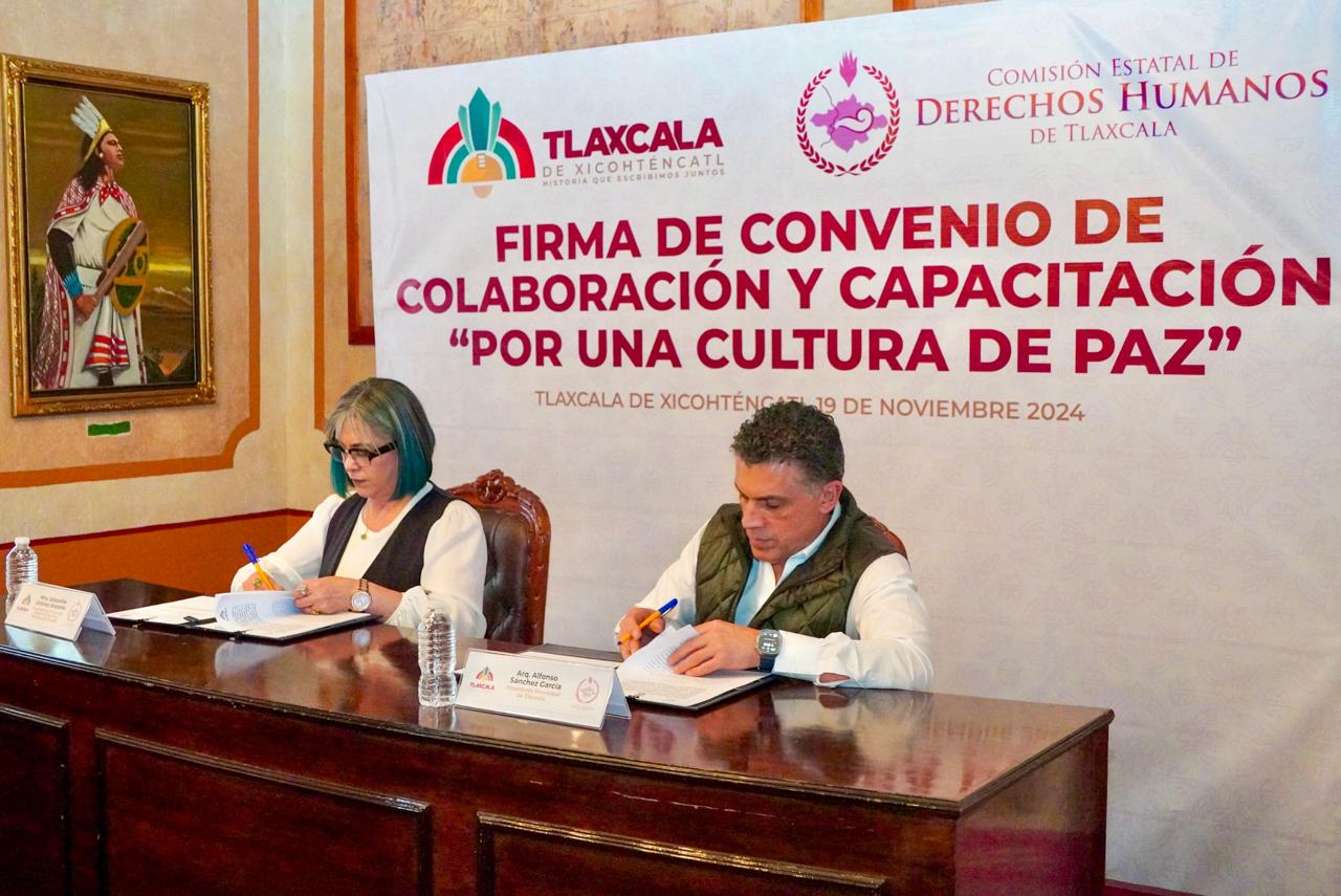 Tlaxcala, Tlax; 20 de noviembre de 2024 (PulsoRed) El Ayuntamiento de Tlaxcala de Xicohténcatl signó un convenio de colaboración con la Comisión Estatal de Derechos Humanos (CEDH), con el objetivo de trabajar de manera conjunta en la capacitación, promoción y divulgación de los derechos humanos, así como desarrollar proyectos y acciones que beneficien a toda la sociedad.