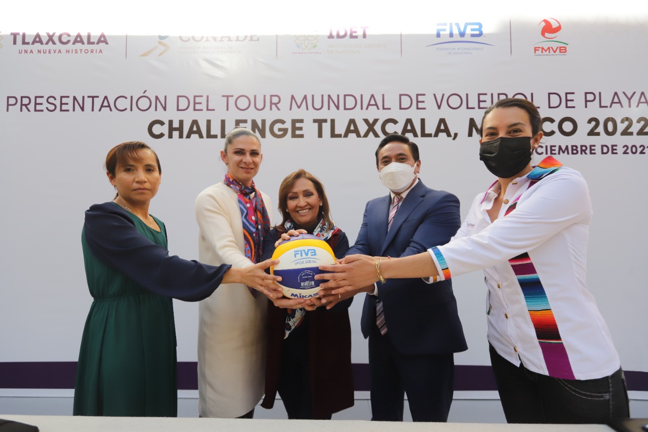 Tlaxcala, Tlax; 22 de diciembre de 2021 (Pulso Red) La gobernadora Lorena Cuéllar Cisneros y la directora general de la Comisión Nacional de Cultura Física y Deporte (Conade), Ana Gabriela Guevara Espinoza, anunciaron que el estado de Tlaxcala será sede del Tour Mundial de Voleibol de Playa, «Challenge Tlaxcala, México 2022», a desarrollarse del 17 al 20 de marzo de 2022, en el que se espera la participación de 48 equipos varios países, quienes se disputarán puntos para la clasificación olímpica rumbo a París 2024.